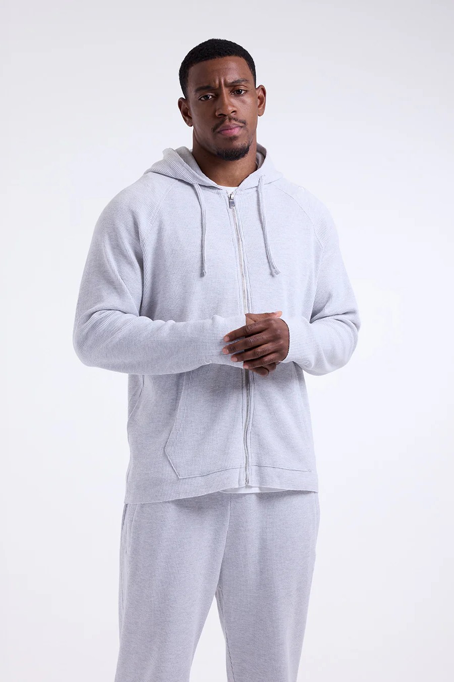 가볍고 통기성이 뛰어난 와플 니트 소재로 만든 풀집 후디는 워밍업, 휴식, 활동적인 하루까지 언제나 편안함을 제공합니다. 지퍼 사이드 포켓은 소지품을 안전하게 보관해 주며 후드와 소매, 밑단의 로우컷 디테일이 세련된 포인트를 더해줍니다.
