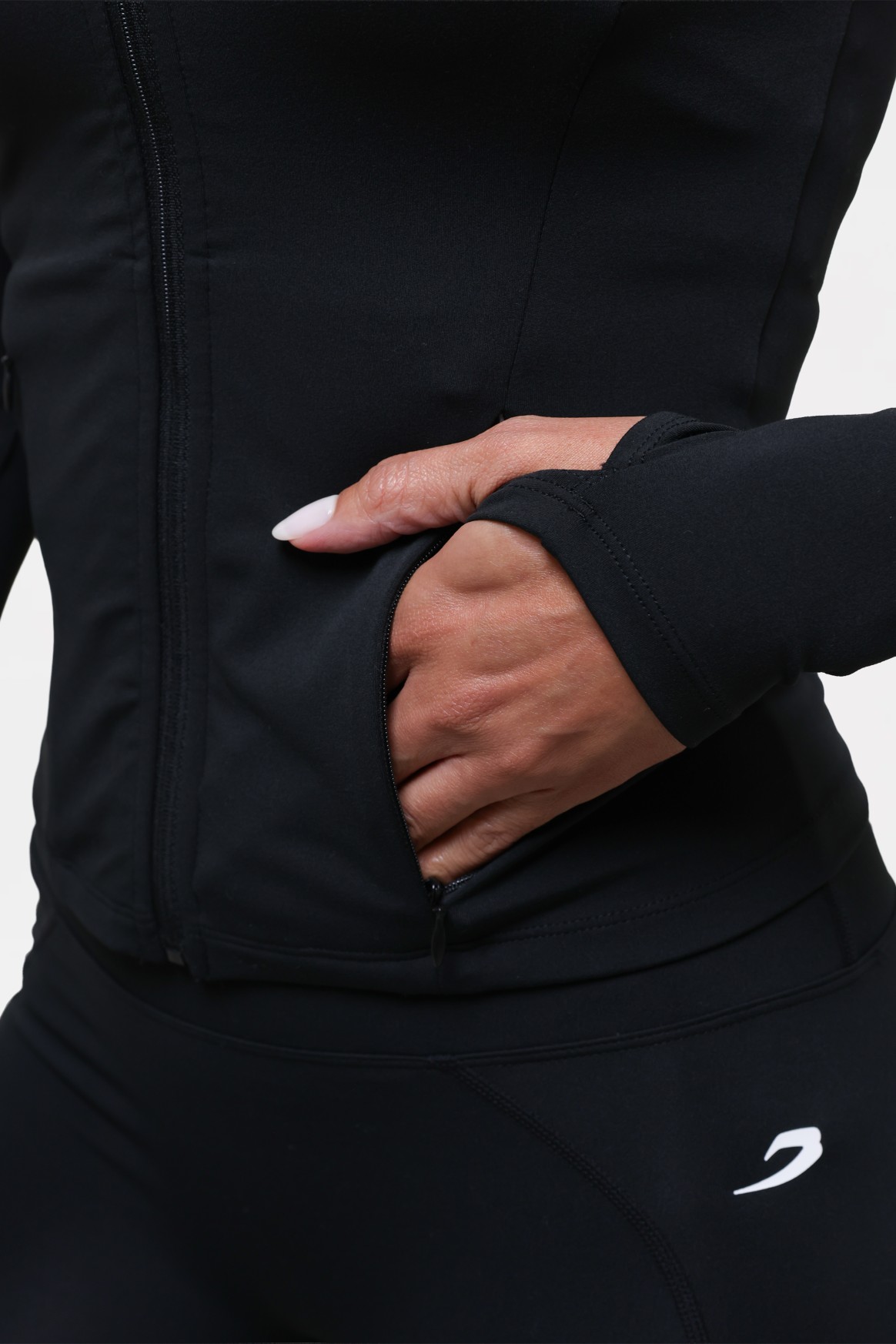 재키 트레이닝 재킷은 울트라 소프트 경량 니트 소재로 제작되어 운동이나 러닝 중에도 안정적인 압박감을 제공합니다. 앞면에는 작은 소지품을 안전하게 보관할 수 있는 두 개의 지퍼 포켓이 있으며 소매에는 엄지 손가락 홀이 있어 편안함과 기능성을 더했습니다. 이 재킷은 일상복의 부드러움과 편안함과 동시에 고강도 트레이닝을 위한 기능성을 결합한 재킷입니다.