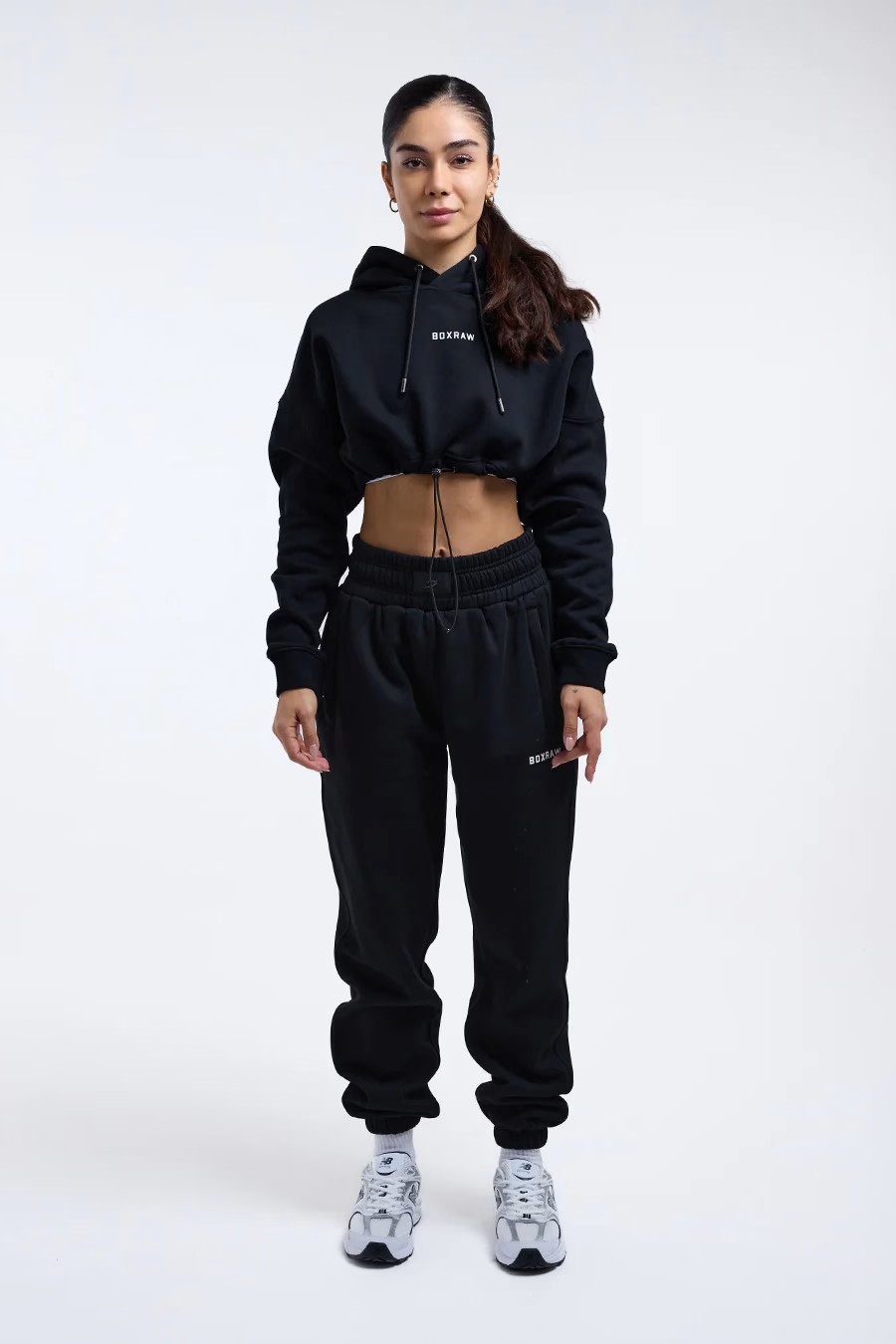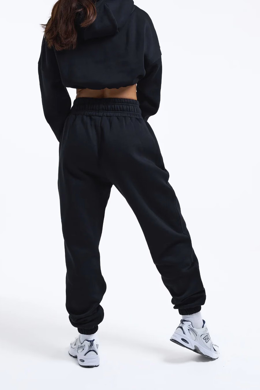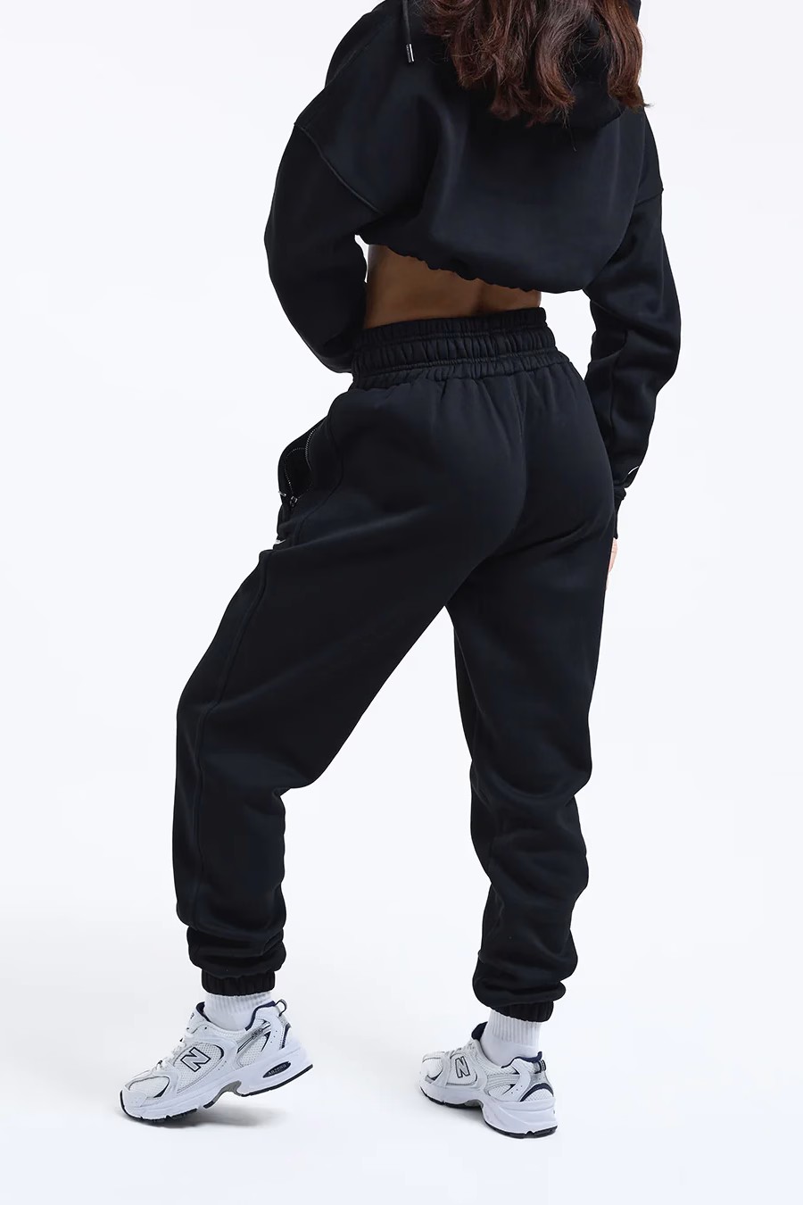 블랙 조거팬츠를 착용한 모델 신장: 162cm, 모델 착용 사이즈: XS