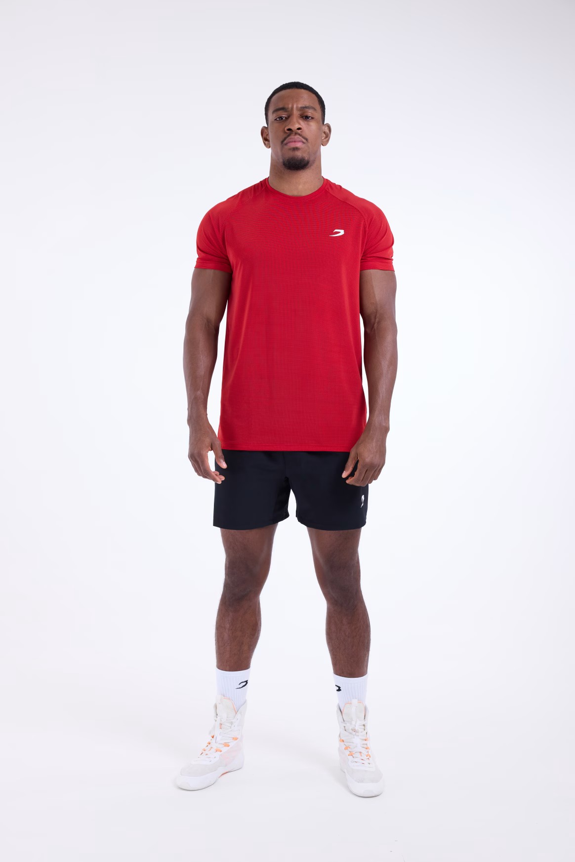 블랙, 그린, 레드 티셔츠를 착용한 모델: 에즈라 (프로 헤비급 복서), 신장: 188cm, 모델 착용 사이즈: L