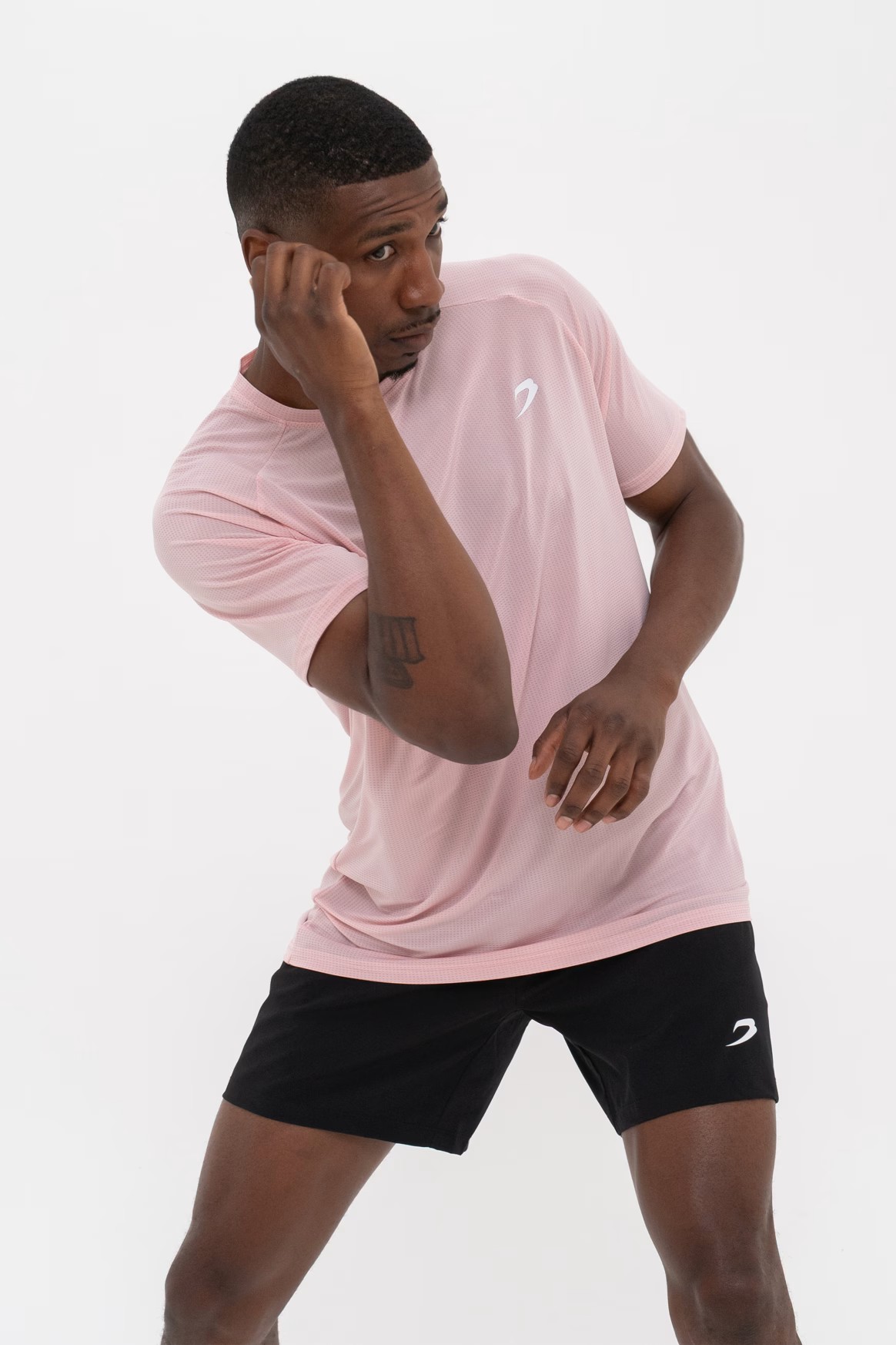 핑크, 베이비 블루 티셔츠를 착용한 모델: 세자르 (프로 웰터급 복서), 신장: 180cm, 모델 착용 사이즈: M
