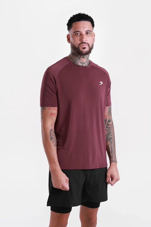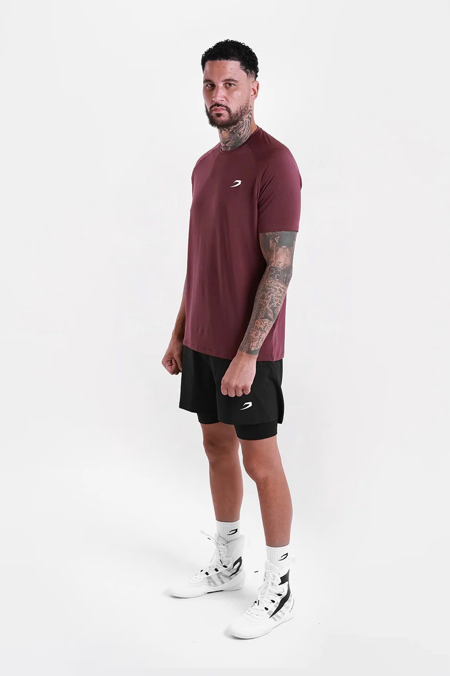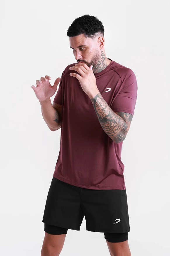 버건디, 네이비, 틸 티셔츠를 착용한 모델: 타이 미첼 (프로 슈퍼미들급 복서), 신장: 193cm, 모델 착용 사이즈: L