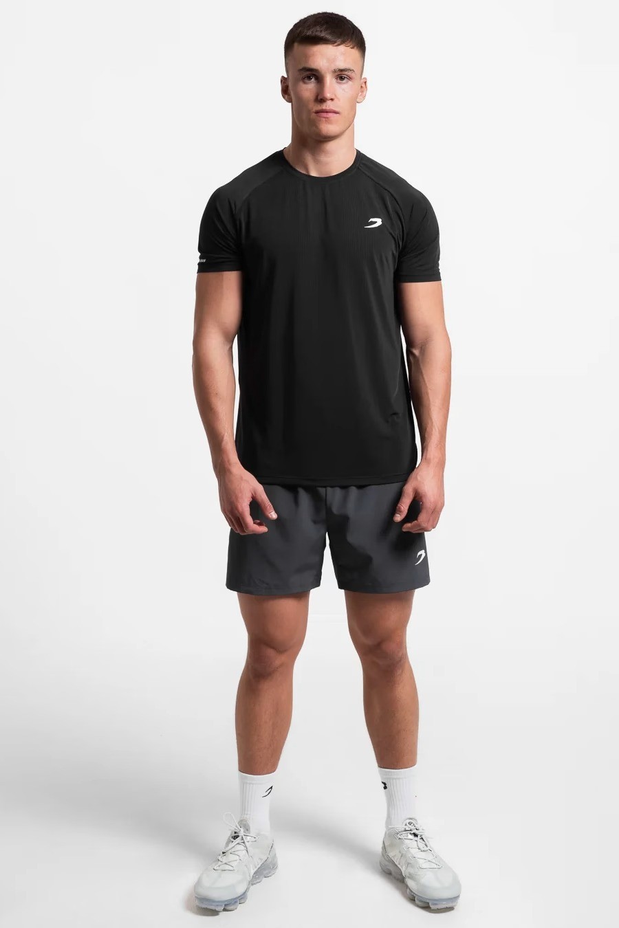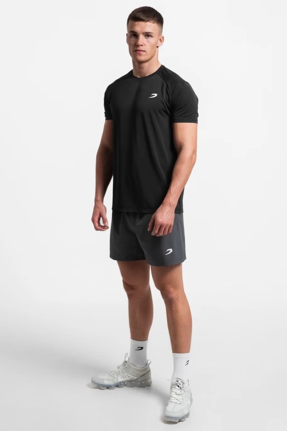 블랙, 차콜 쇼츠를 착용한 모델: 테일러 (아마추어 라이트헤비급 복서), 신장: 180cm, 모델 착용 사이즈: M