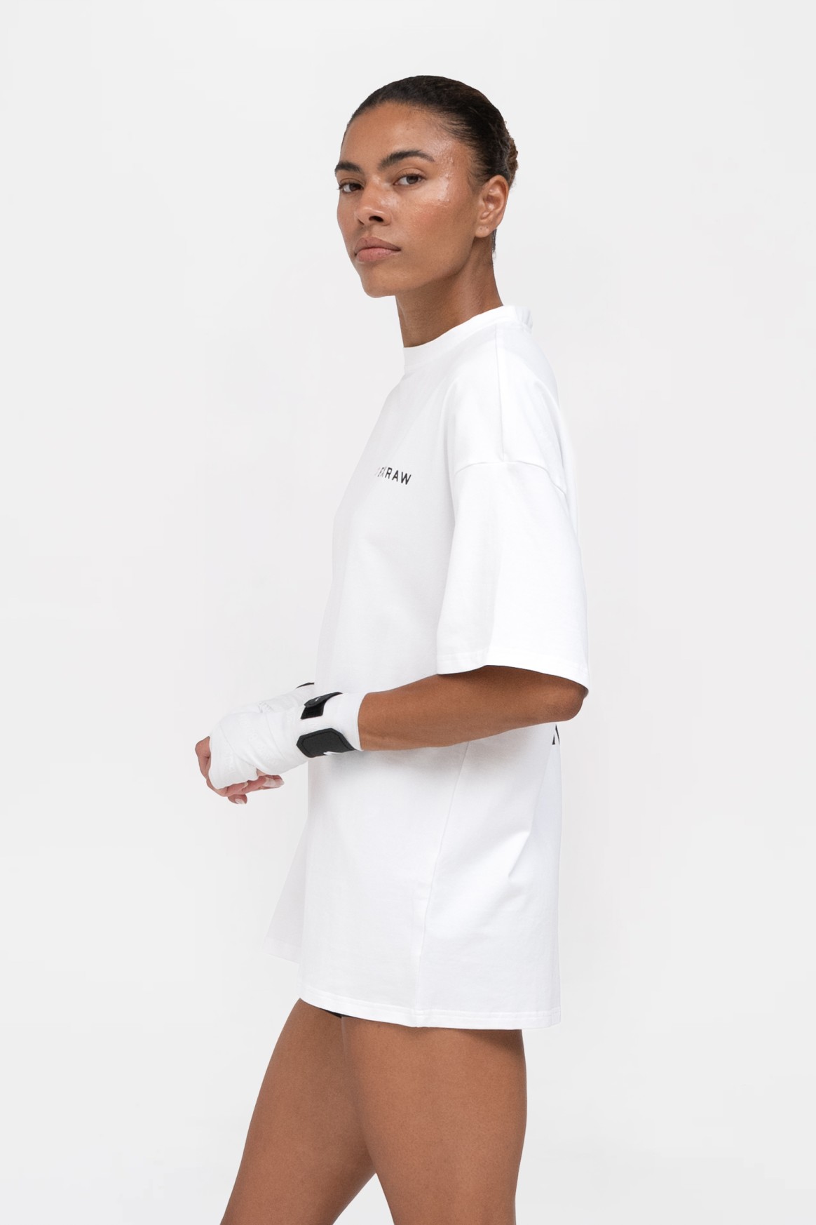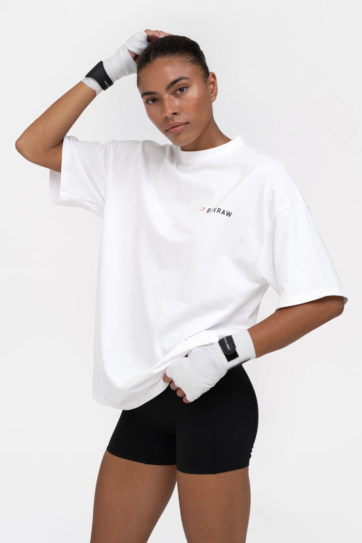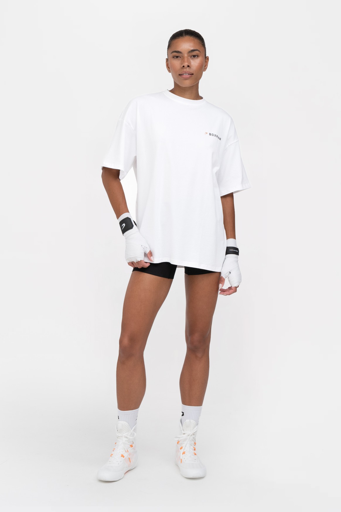 We Don't Play Boxing 오버사이즈 티셔츠가 트레이닝이나 일상복으로 모두 착용 가능하며 편안함과 실용성을 제공하는 동시에 복싱은 결코 게임이 아니라는 메시지를 명확하게 전달합니다.
