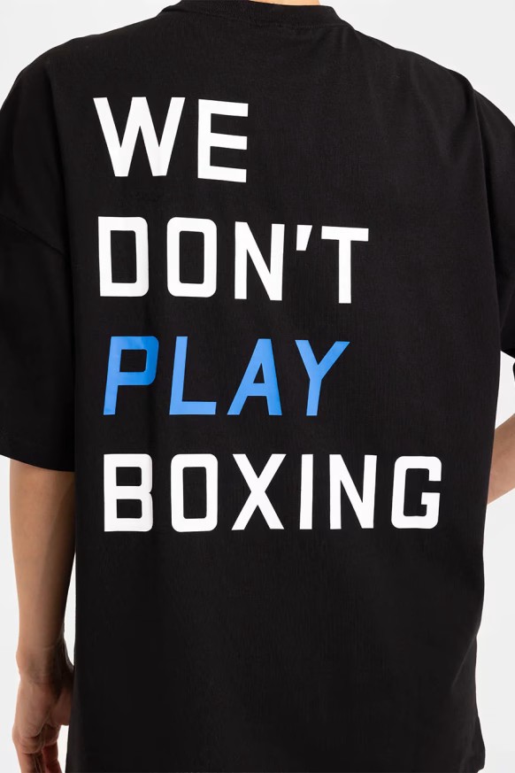 일부 사람들은 복싱을 가장 위험한 스포츠로만 여기며 편견을 갖고 바라보기도 합니다. 하지만 우리 커뮤니티에서는 이미 잘 알려진 사실이 있습니다. 축구, 농구, 다른 어떤 스포츠는 play할 수 있지만, 복싱은 play할 수 없습니다. 복싱은 결코 게임이 아닙니다. 이 오버사이즈 티셔츠의 시그니처 슬로건 WE DON'T PLAY BOXING®은 이 사실을 세상에 상기시키며, 매일 힘을 더해 줍니다.