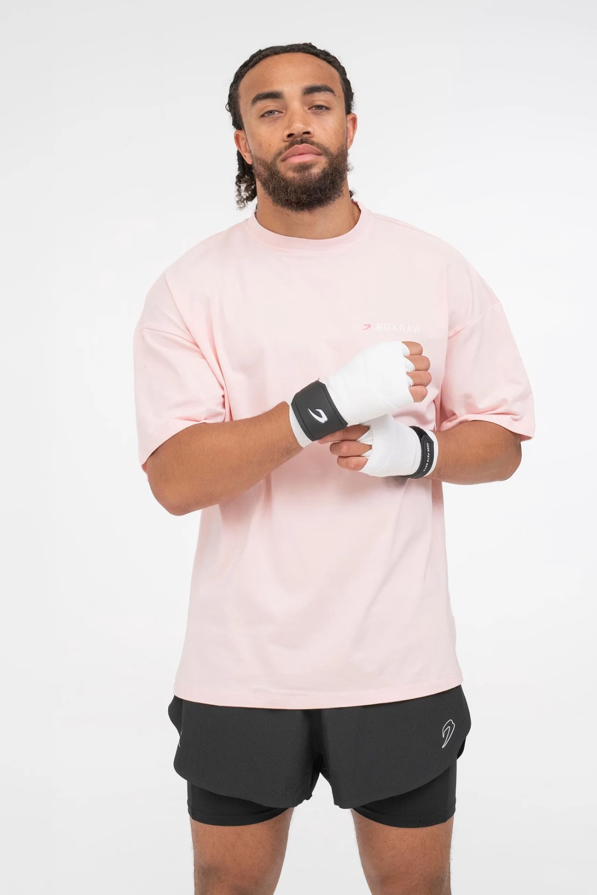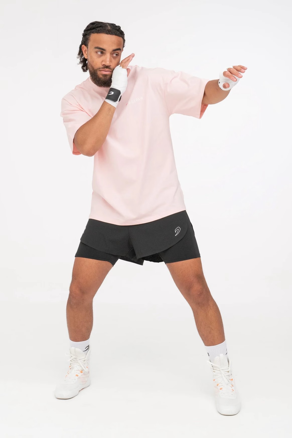 핑크, 퍼플 티셔츠를 착용한 모델: CJ (프로 웰터급 복서), 신장: 180cm, 모델 착용 사이즈: M