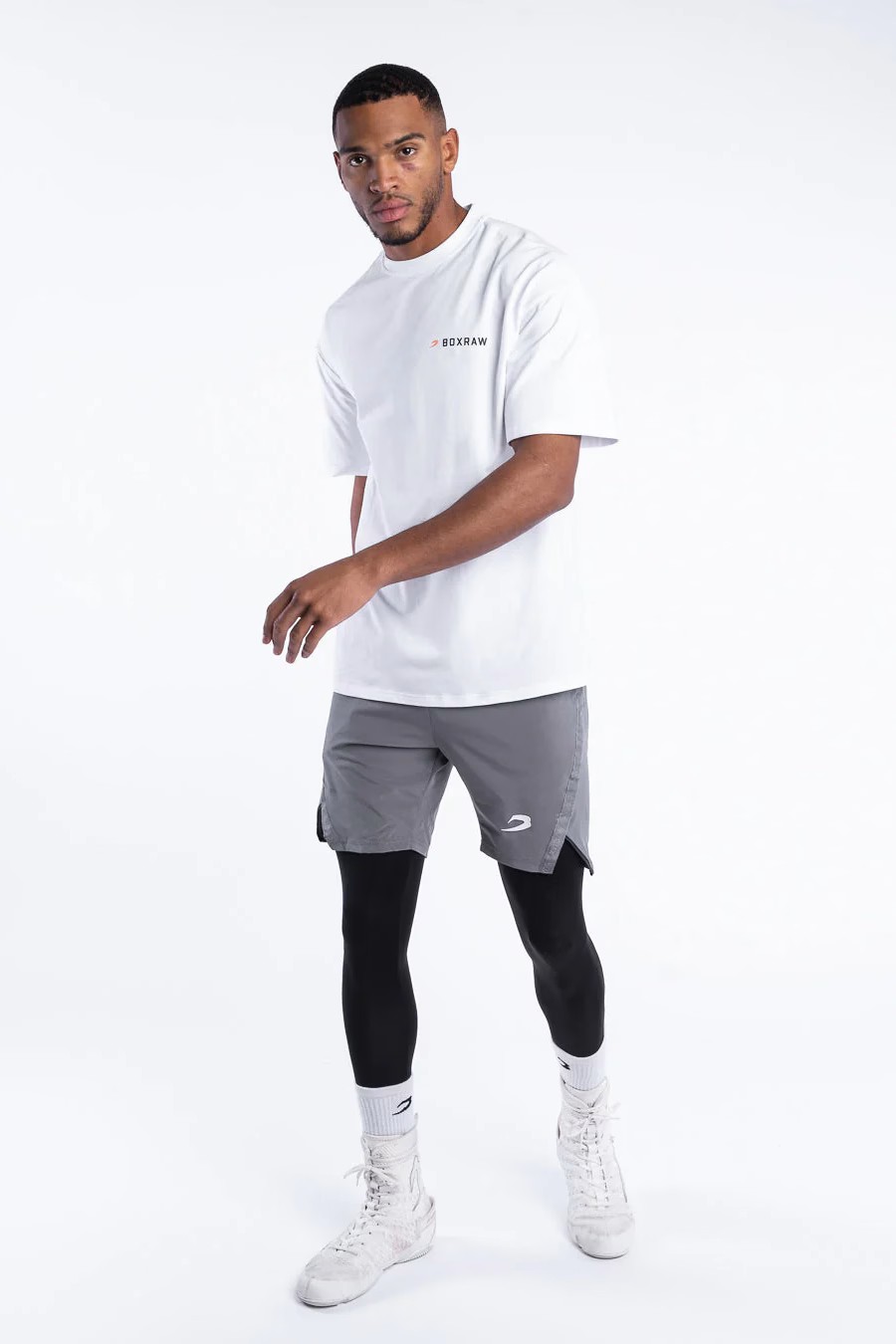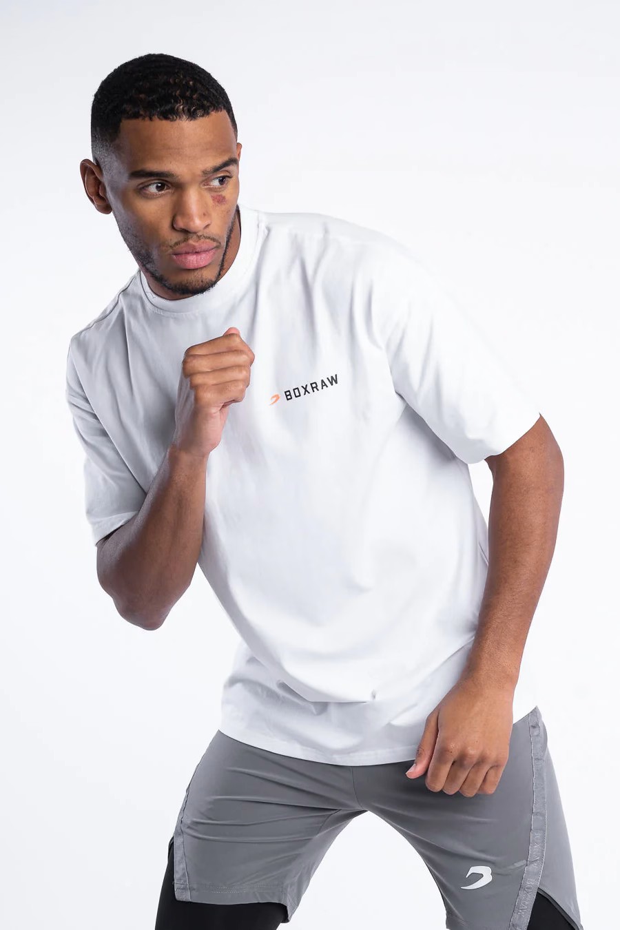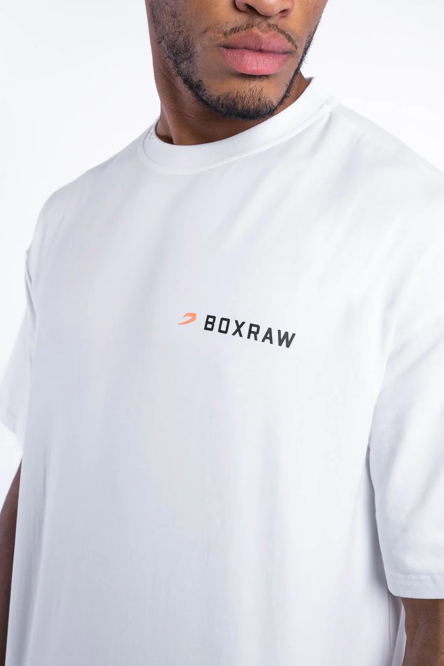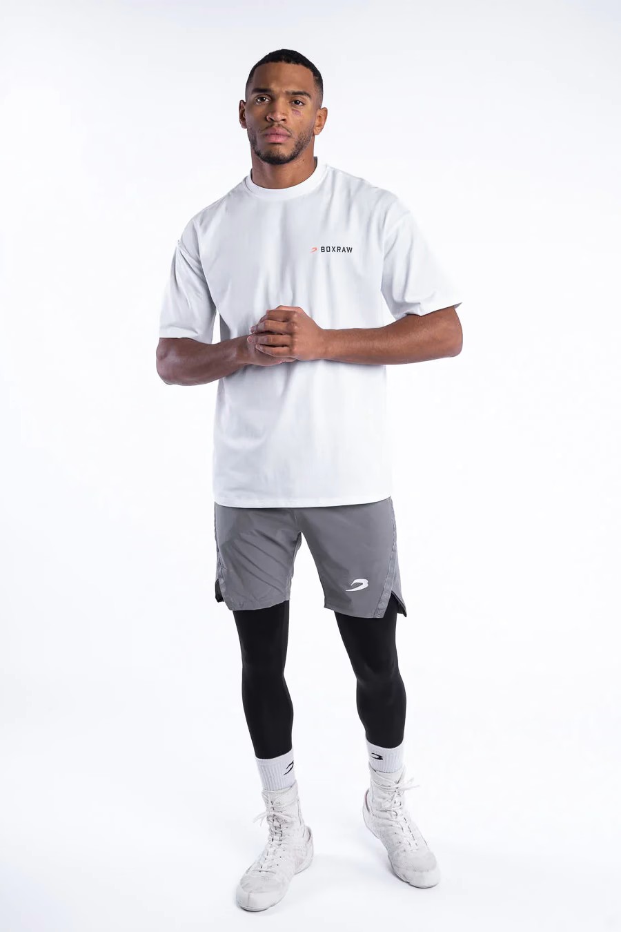 화이트, 블랙 티셔츠를 착용한 모델: 마틴 (프로 슈퍼미들급 복서), 신장: 188cm, 모델 착용 사이즈: M