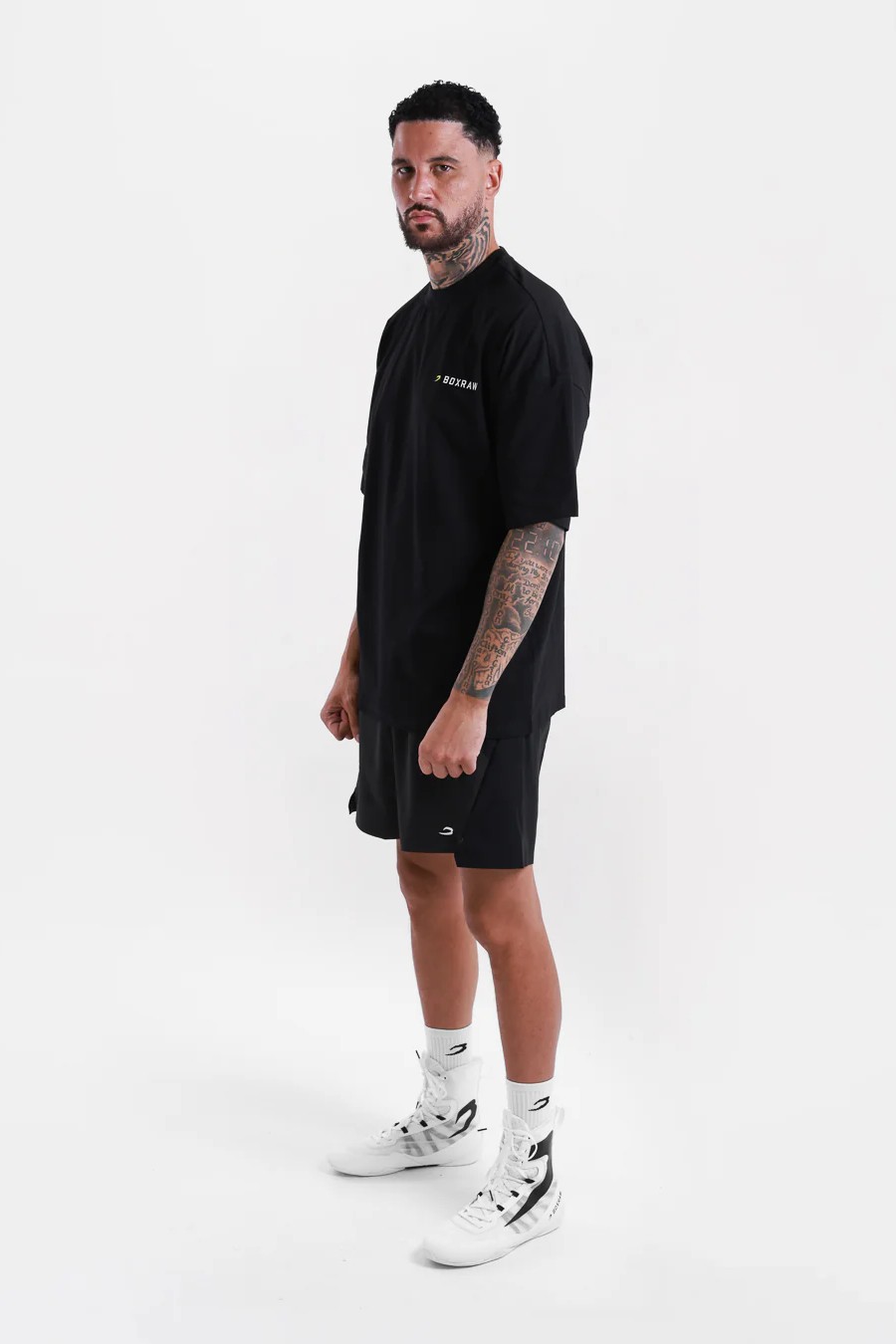 We Don't Play Boxing 오버사이즈 티셔츠가 트레이닝이나 일상복으로 모두 착용 가능하며 편안함과 실용성을 제공하는 동시에 복싱은 결코 게임이 아니라는 메시지를 명확하게 전달합니다.