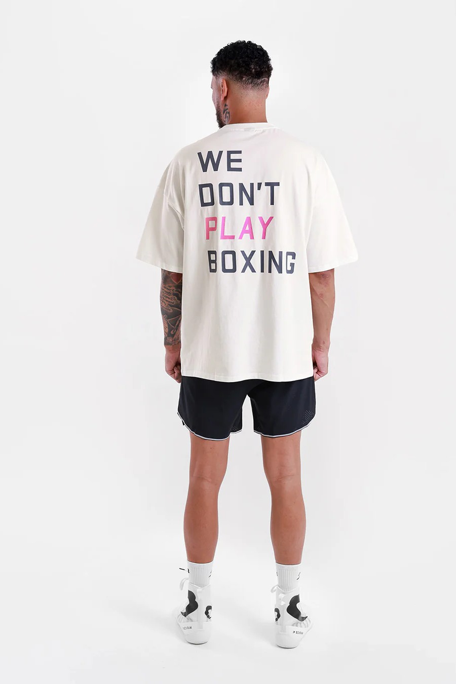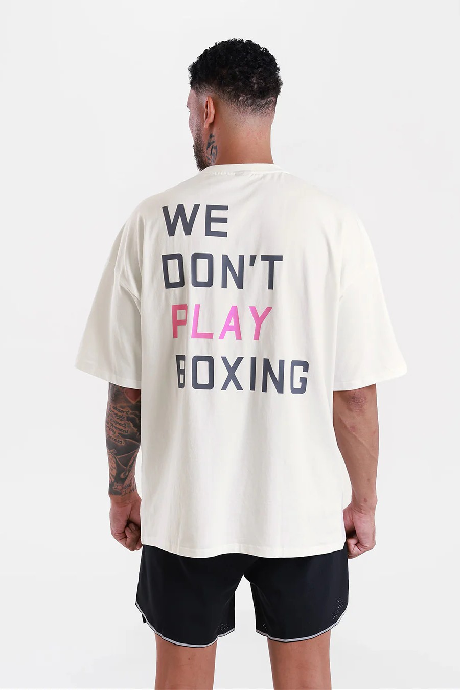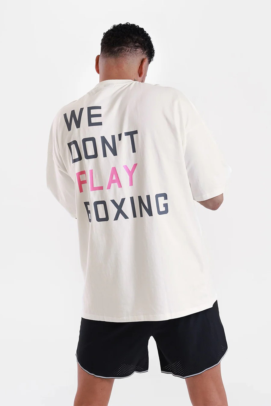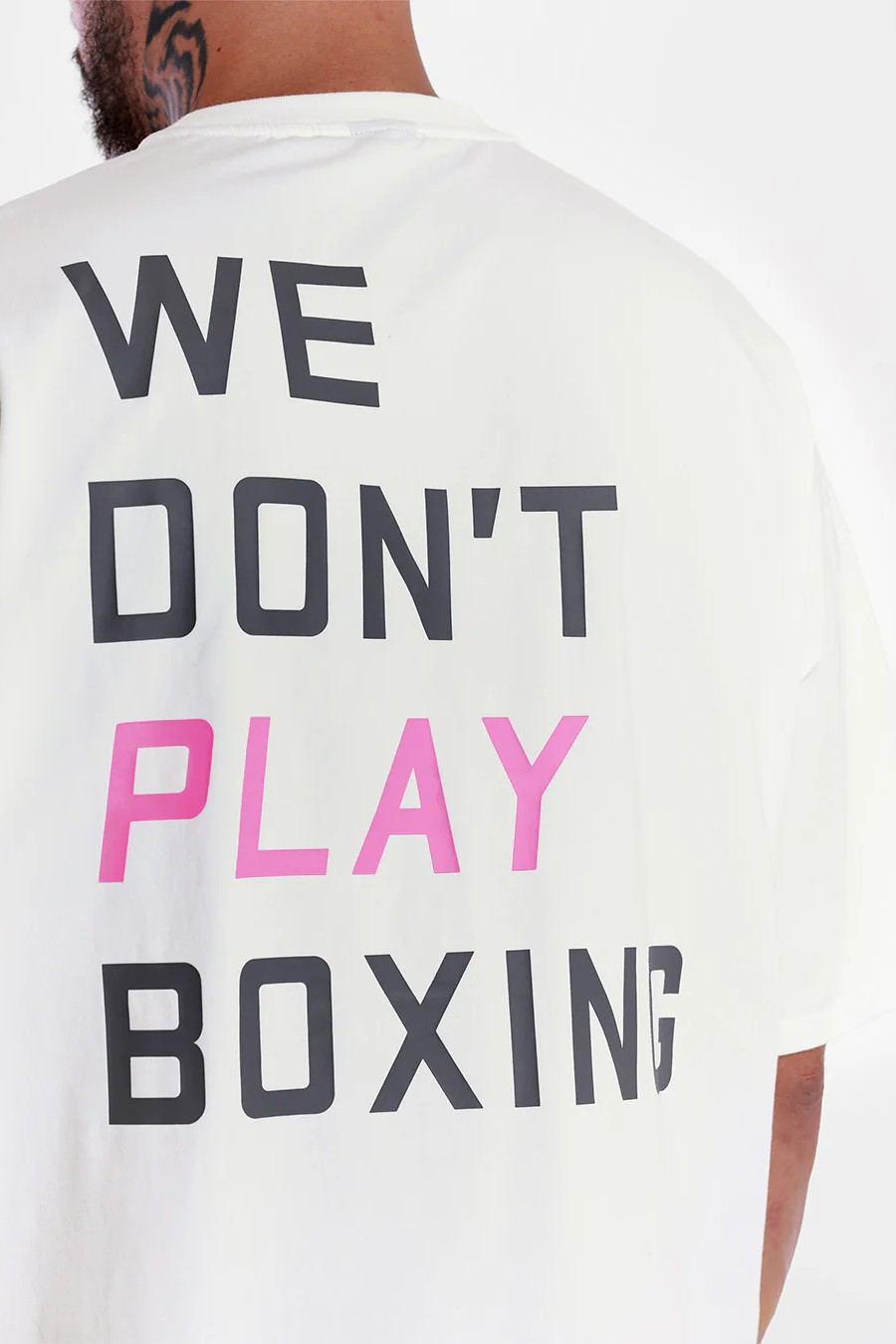 일부 사람들은 복싱을 가장 위험한 스포츠로만 여기며 편견을 갖고 바라보기도 합니다. 하지만 우리 커뮤니티에서는 이미 잘 알려진 사실이 있습니다. 축구, 농구, 다른 어떤 스포츠는 play할 수 있지만, 복싱은 play할 수 없습니다. 복싱은 결코 게임이 아닙니다. 이 오버사이즈 티셔츠의 시그니처 슬로건 WE DON'T PLAY BOXING®은 이 사실을 세상에 상기시키며, 매일 힘을 더해 줍니다.