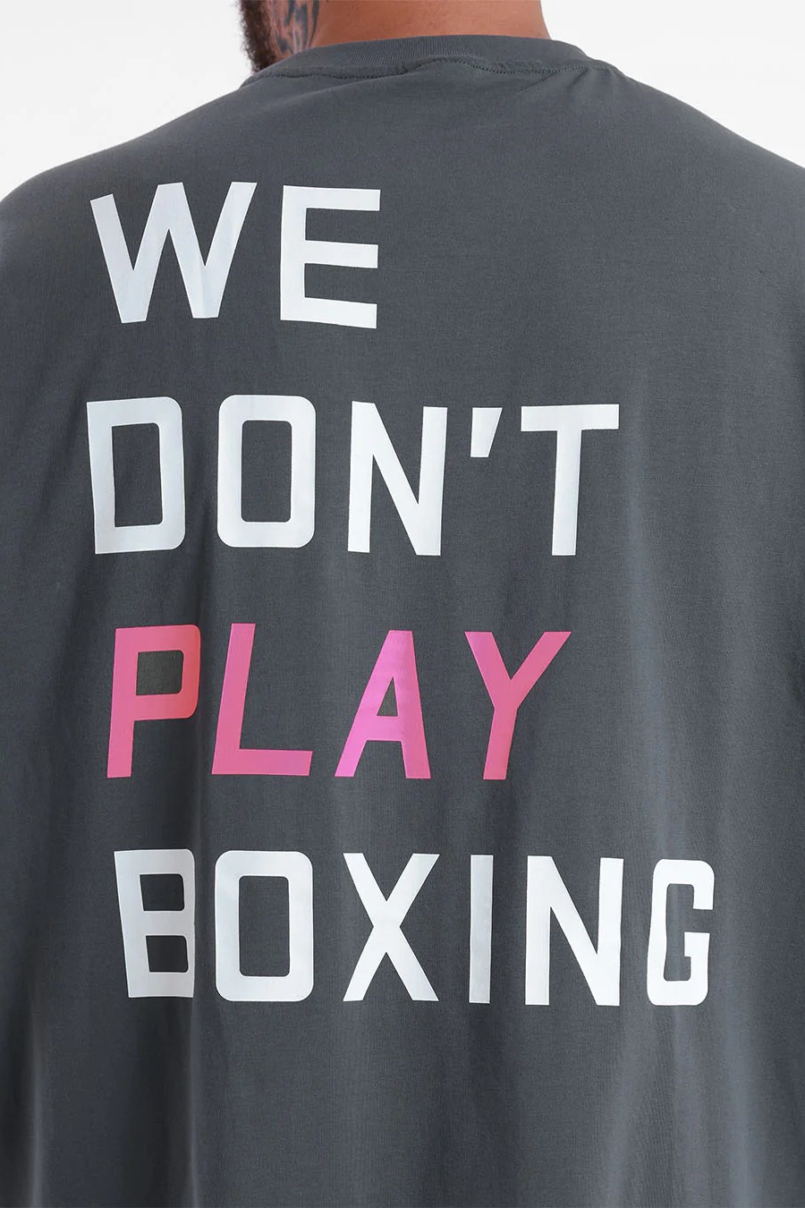 일부 사람들은 복싱을 가장 위험한 스포츠로만 여기며 편견을 갖고 바라보기도 합니다. 하지만 우리 커뮤니티에서는 이미 잘 알려진 사실이 있습니다. 축구, 농구, 다른 어떤 스포츠는 play할 수 있지만, 복싱은 play할 수 없습니다. 복싱은 결코 게임이 아닙니다. 이 오버사이즈 티셔츠의 시그니처 슬로건 WE DON'T PLAY BOXING®은 이 사실을 세상에 상기시키며, 매일 힘을 더해 줍니다.
