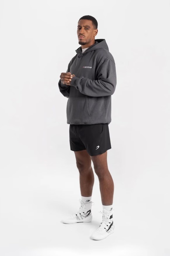블랙 후디를 착용한 모델: CJ (프로 웰터급 복서), 신장: 180cm, 모델 착용 사이즈: M