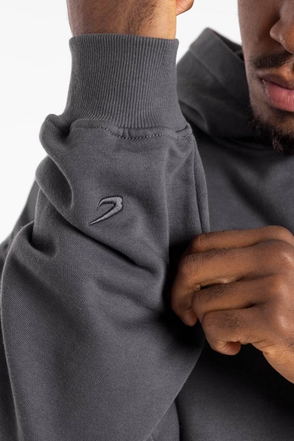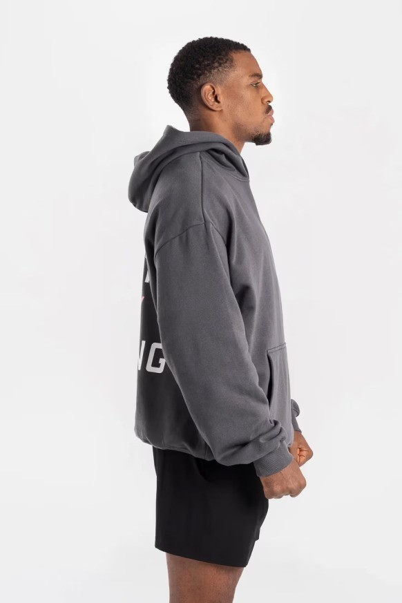 블랙/옐로우, 그레이/핑크후디를 착용한 모델: 에즈라 (프로 헤비급 복서), 신장: 188cm, 모델 착용 사이즈: L