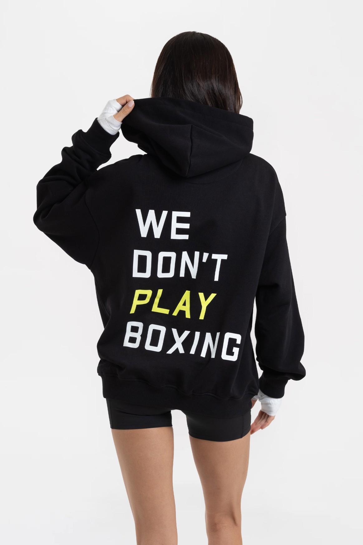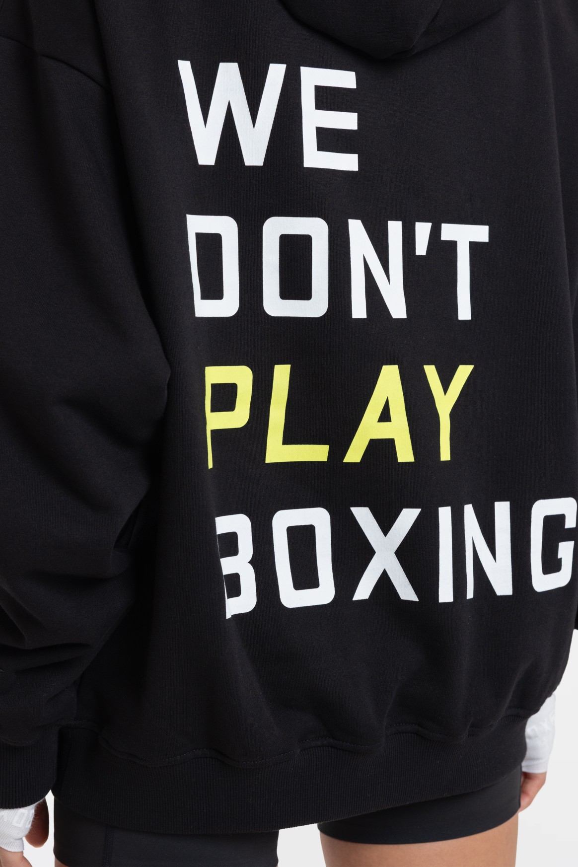 We Don't Play Boxing 후디가 트레이닝이나 일상복으로 모두 착용 가능하며 편안함과 실용성을 제공하는 동시에 복싱은 결코 게임이 아니라는 메시지를 명확하게 전달합니다.