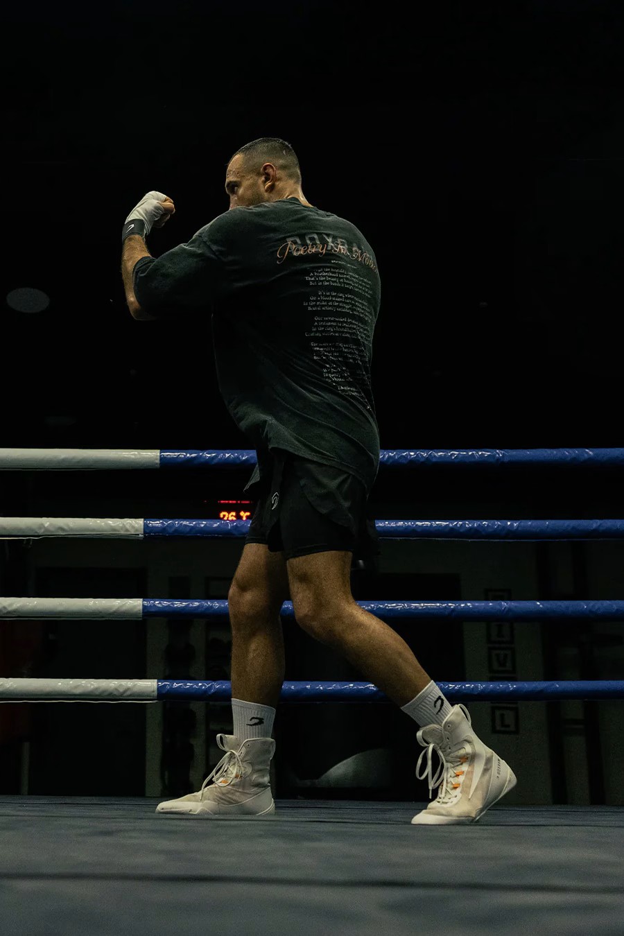 모델: 에즈라 (프로 헤비급 복서), 신장: 188cm, 모델 착용 사이즈: L