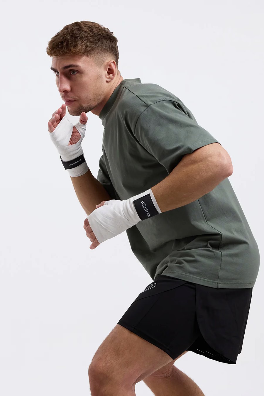 화이트 티셔츠를 착용한 모델: CJ (프로 웰터급 복서), 신장: 180cm, 모델 착용 사이즈: M