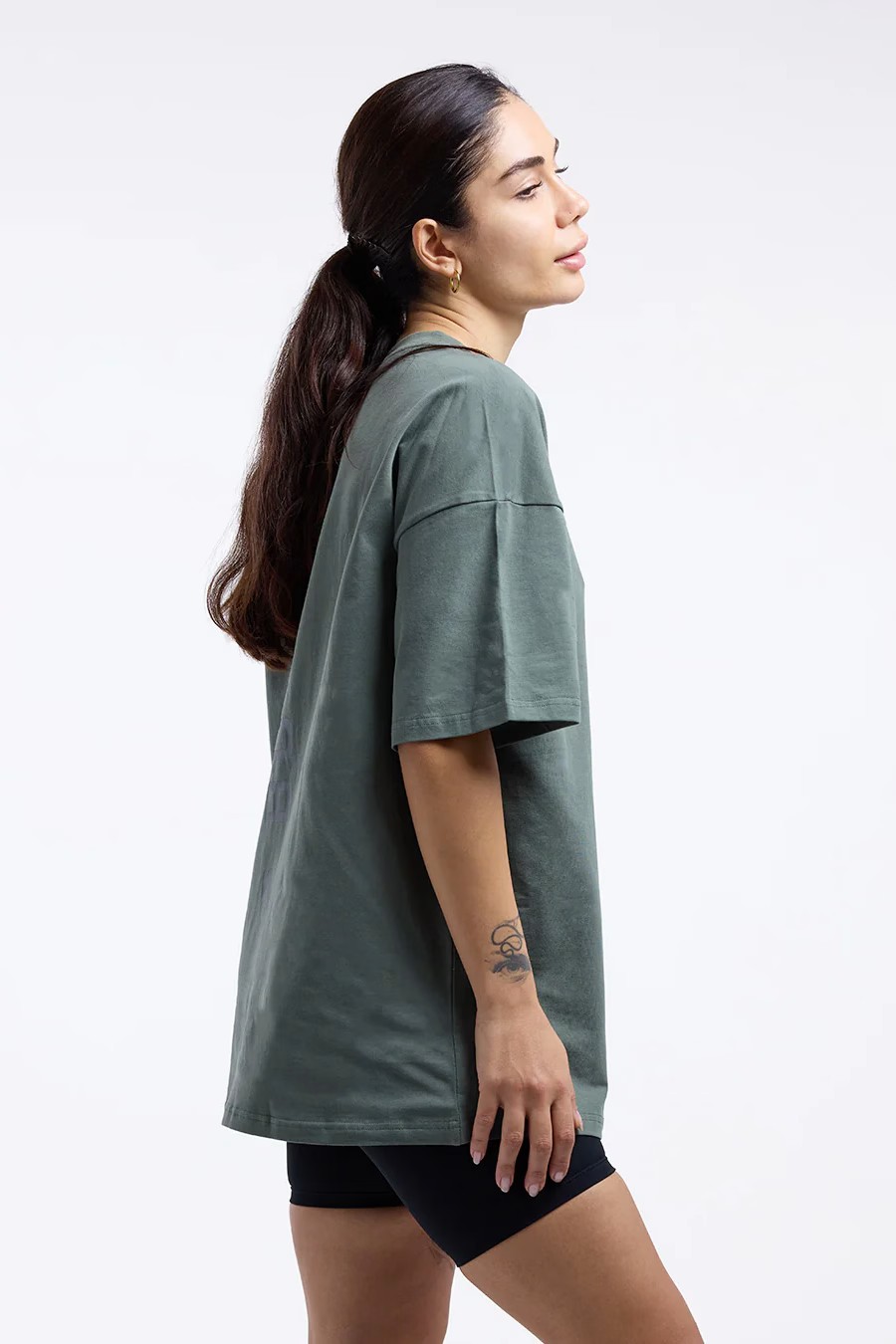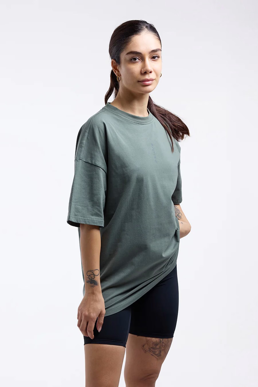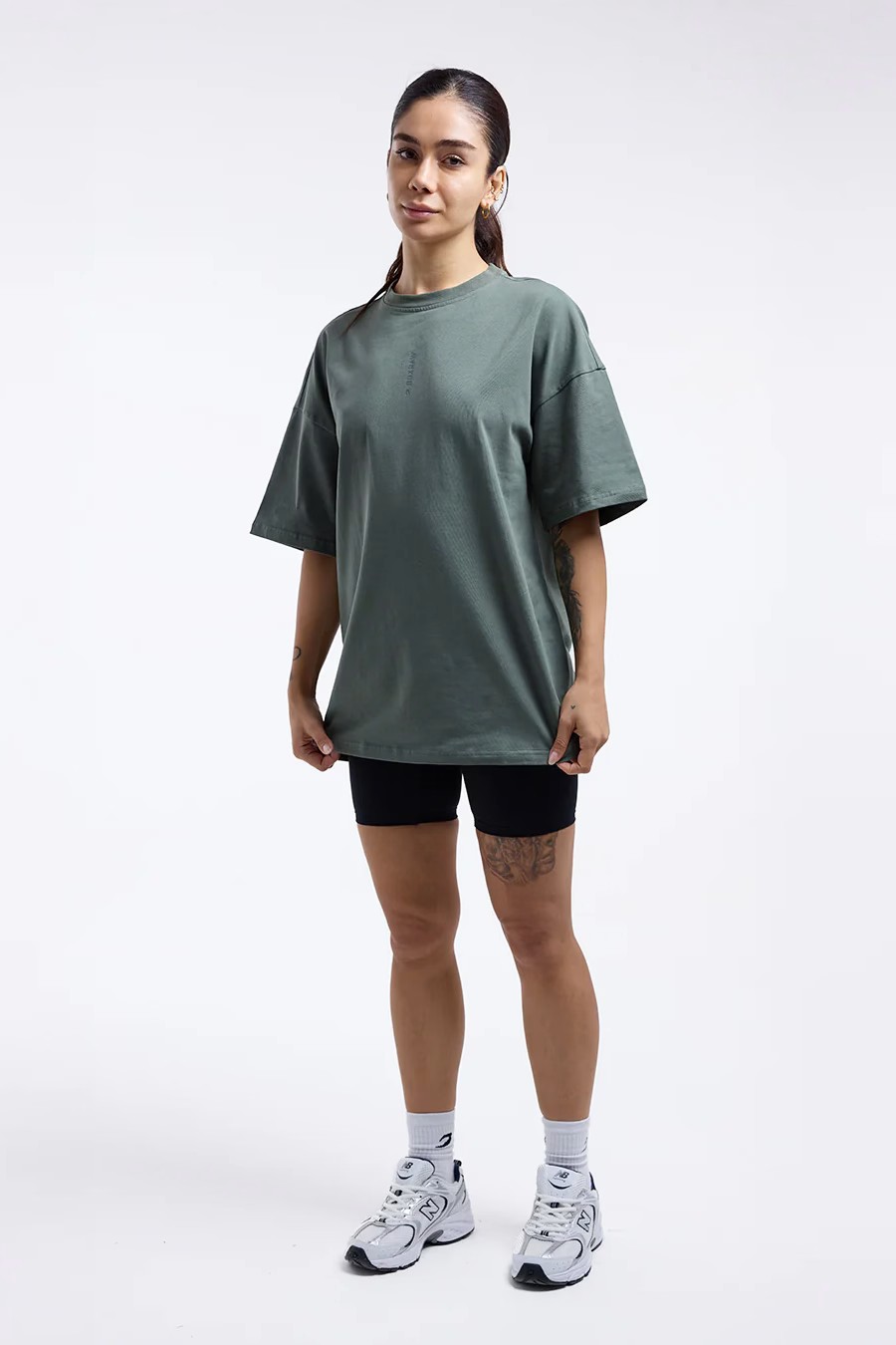 블랙 티셔츠를 착용한 모델 신장: 177cm, 모델 착용 사이즈: S