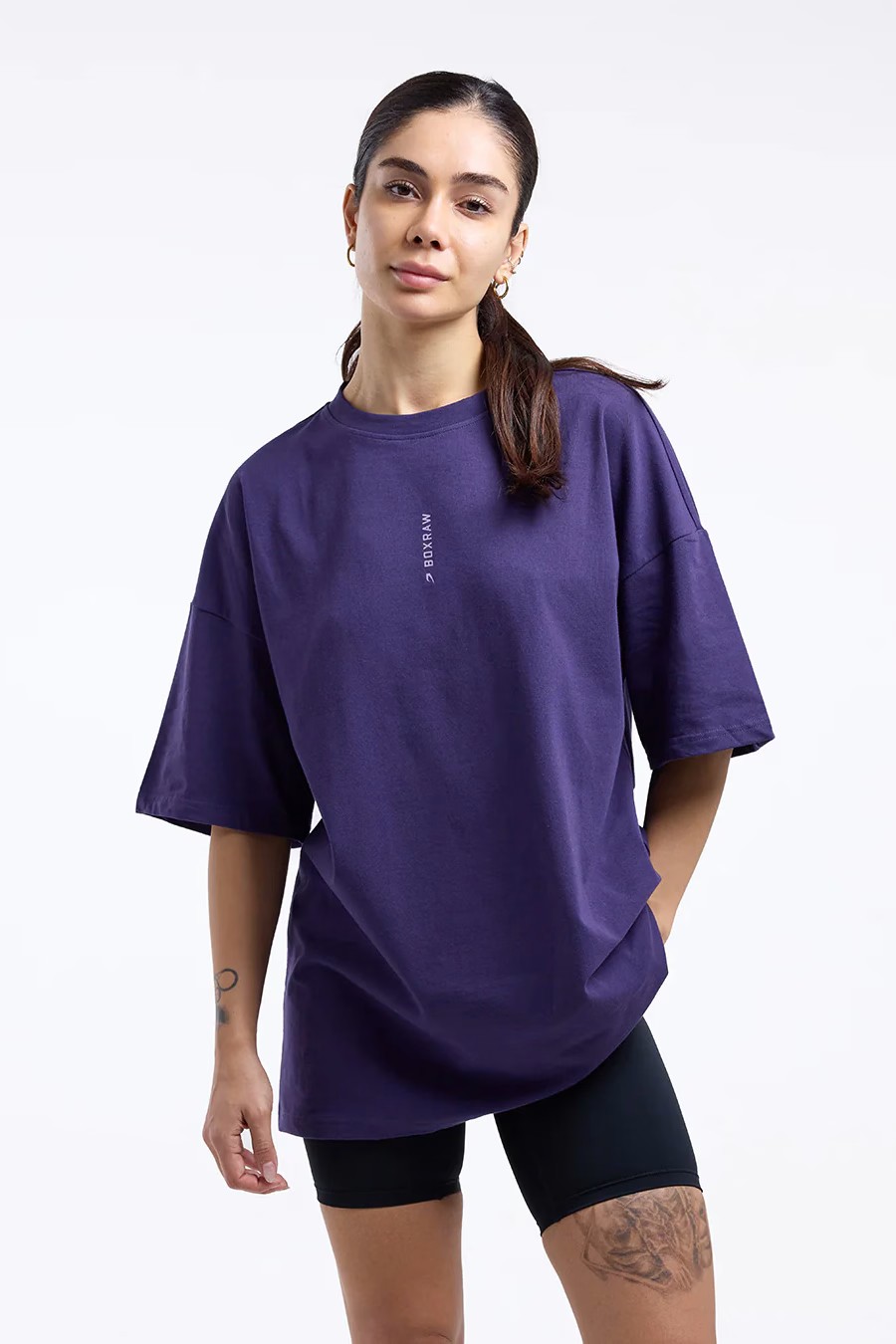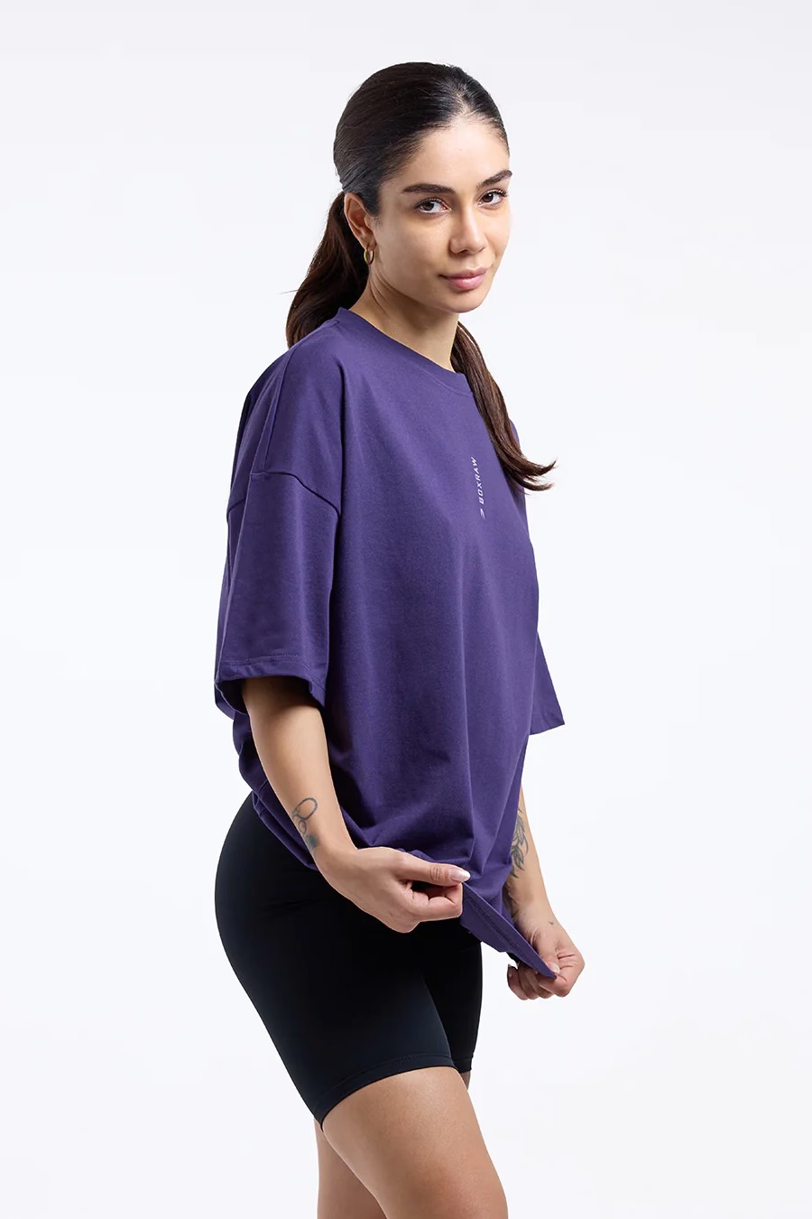 블랙 티셔츠를 착용한 모델 신장: 177cm, 모델 착용 사이즈: S