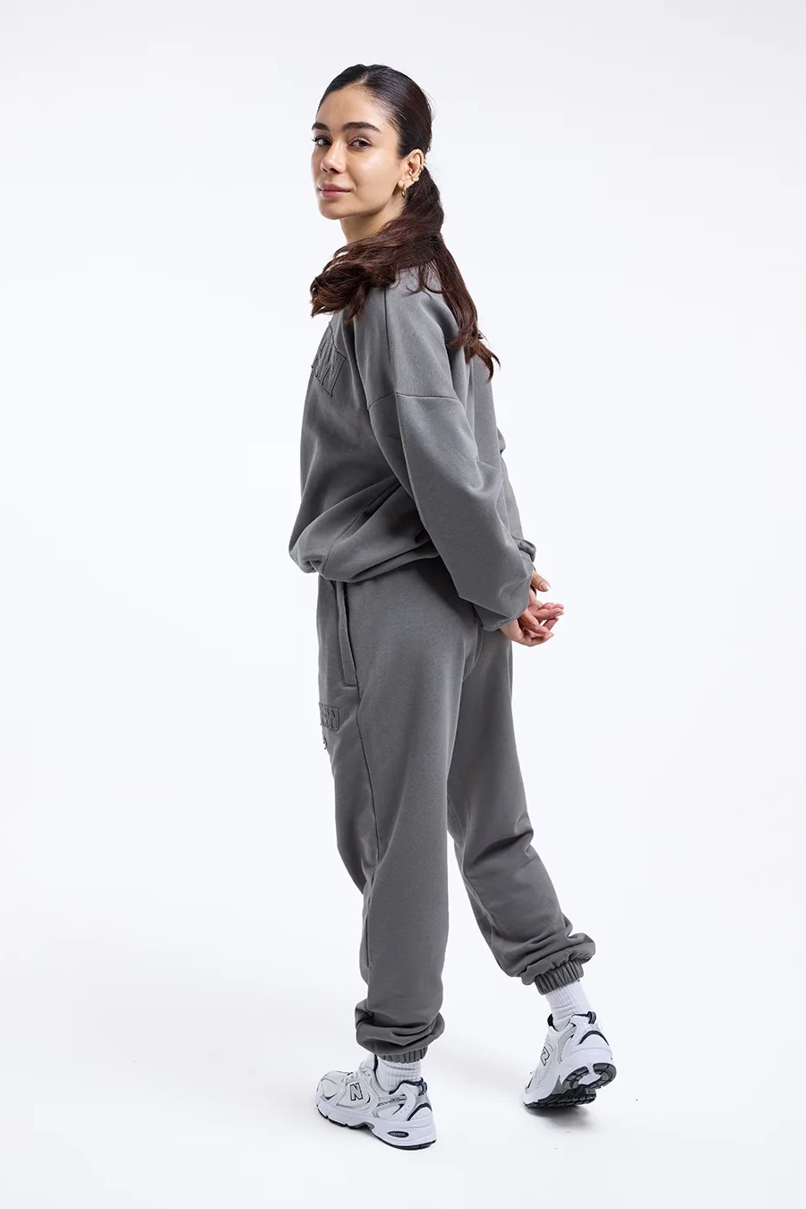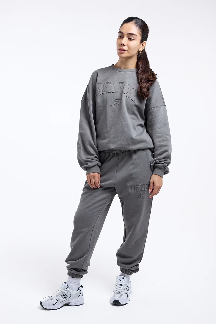 블랙, 디스트레스드 그레이 스웻셔츠를 착용한 모델 신장: 163cm, 모델 착용 사이즈: XS