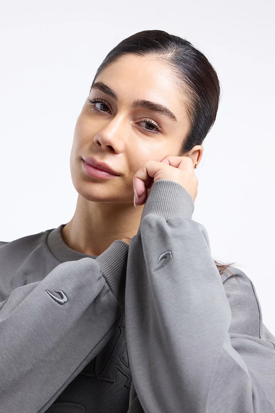 그린 스웻셔츠를 착용한 모델 신장: 167cm, 모델 착용 사이즈: S