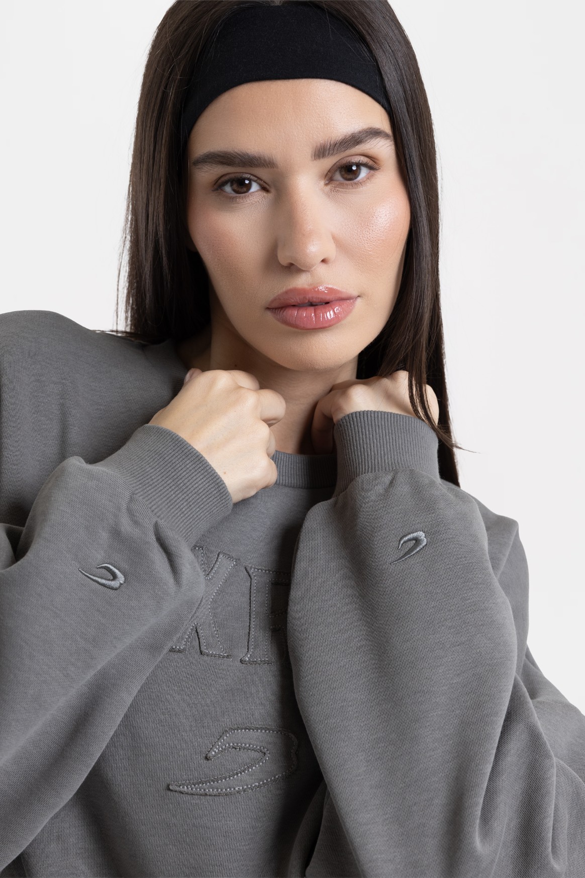 디스트레스드 그레이 스웻셔츠를 착용한 모델 신장: 177cm, 모델 착용 사이즈: S