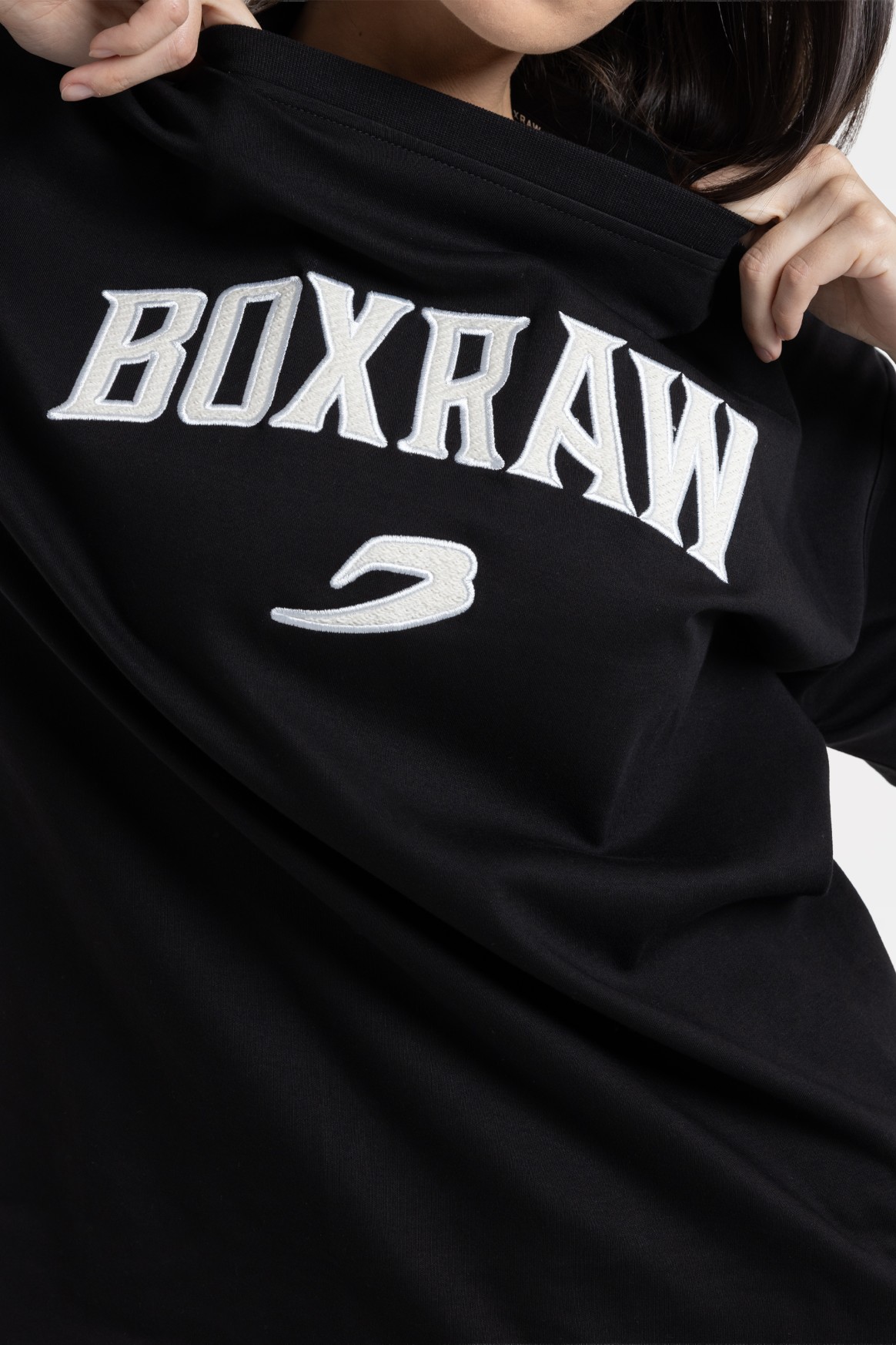 내구성 높은 헤비 코튼 소재로 제작되어 자유롭고 편안한 오버사이즈 핏을 제공합니다. 가슴에는 BOXRAW 아플리케 로고가 포인트로 들어가 있습니다.