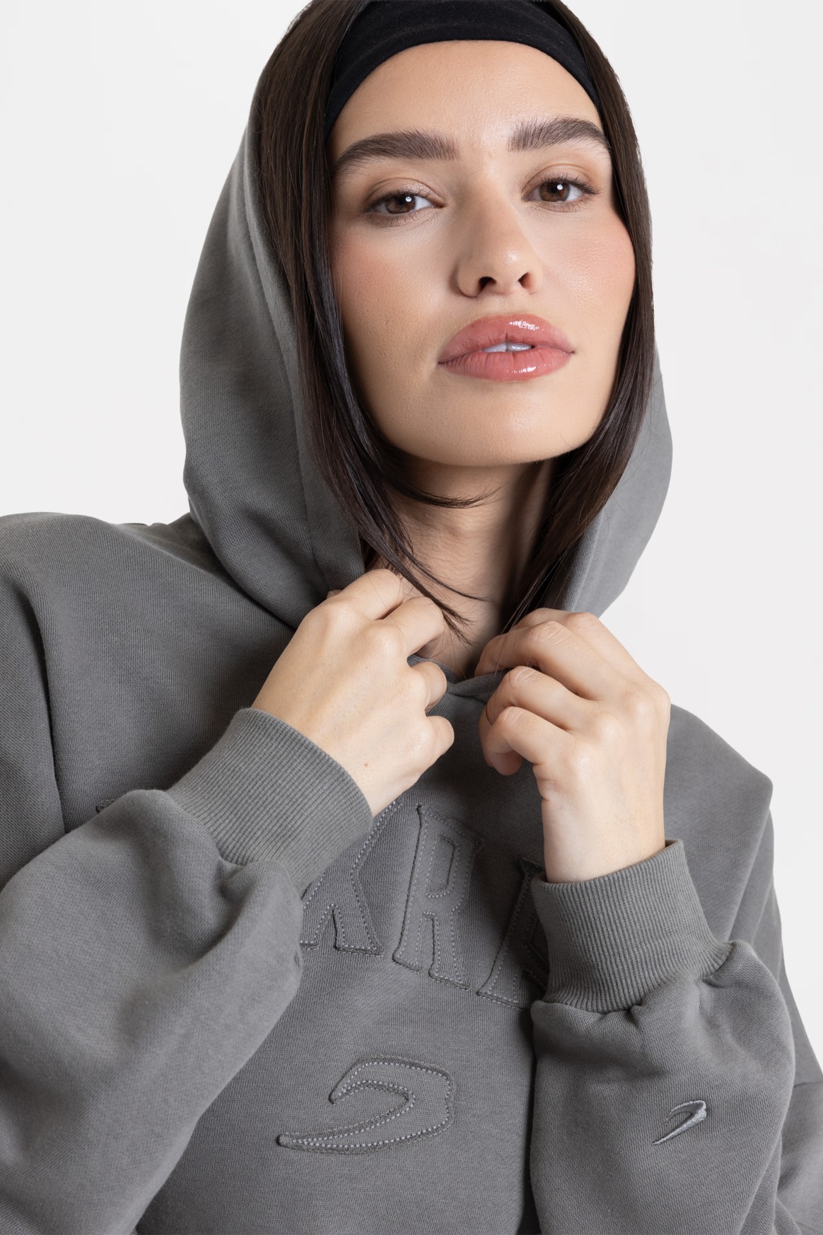 블랙 후디를 착용한 모델 신장: 165cm, 모델 착용 사이즈: XS