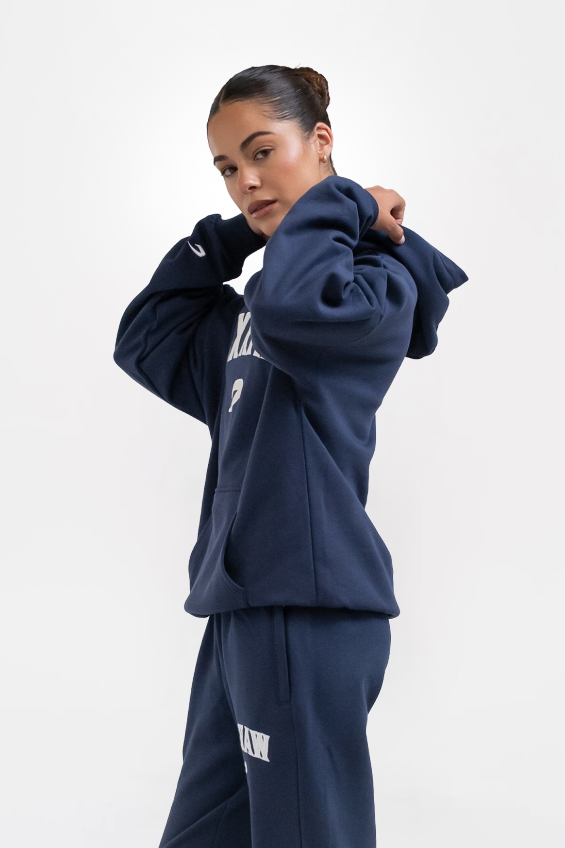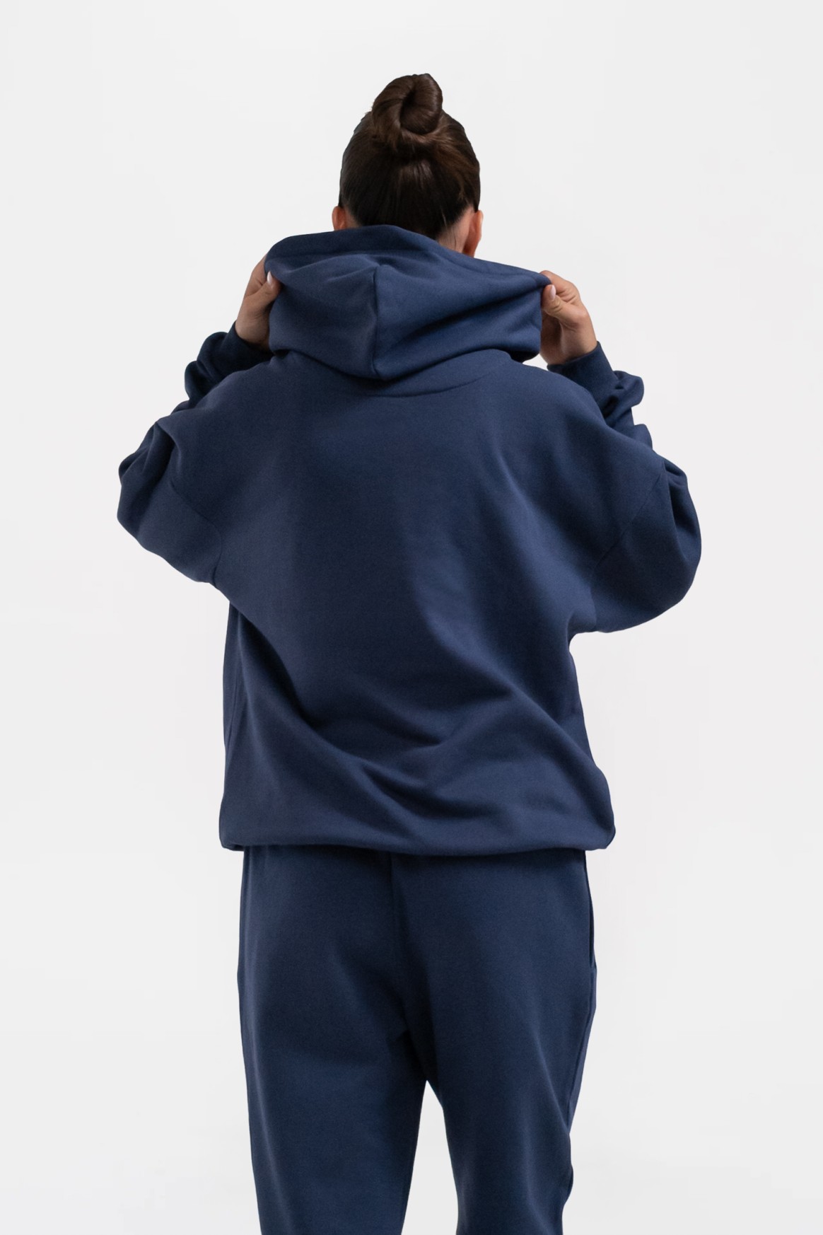 미드나이트 블루, 파우더 블루 후디를 착용한 모델 신장: 174cm, 모델 착용 사이즈: S