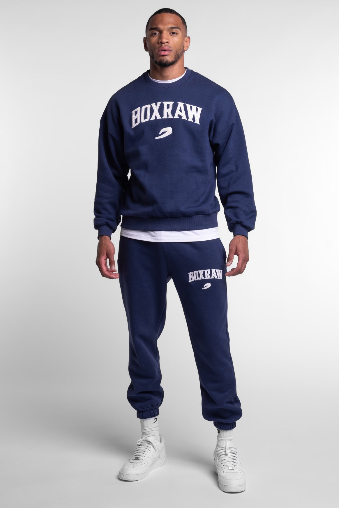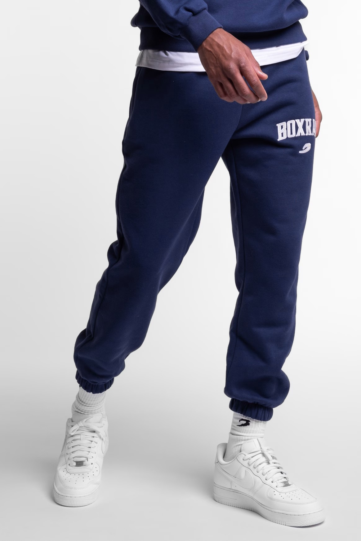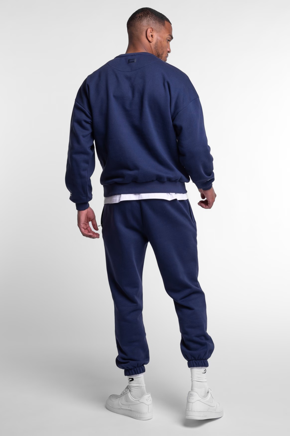 미드나이트 블루, 블랙 조거팬츠를 착용한 모델: 마틴 (프로 슈퍼미들급 복서), 신장: 188cm, 모델 착용 사이즈: M