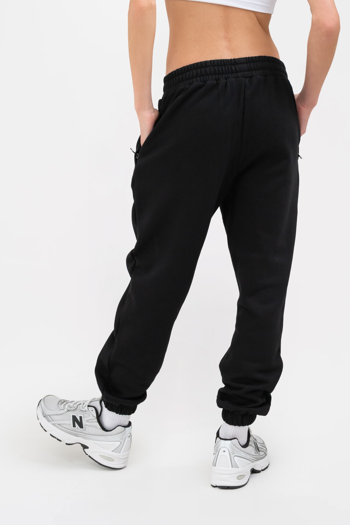 블랙 조거팬츠를 착용한 모델 신장: 165cm, 모델 착용 사이즈: XS