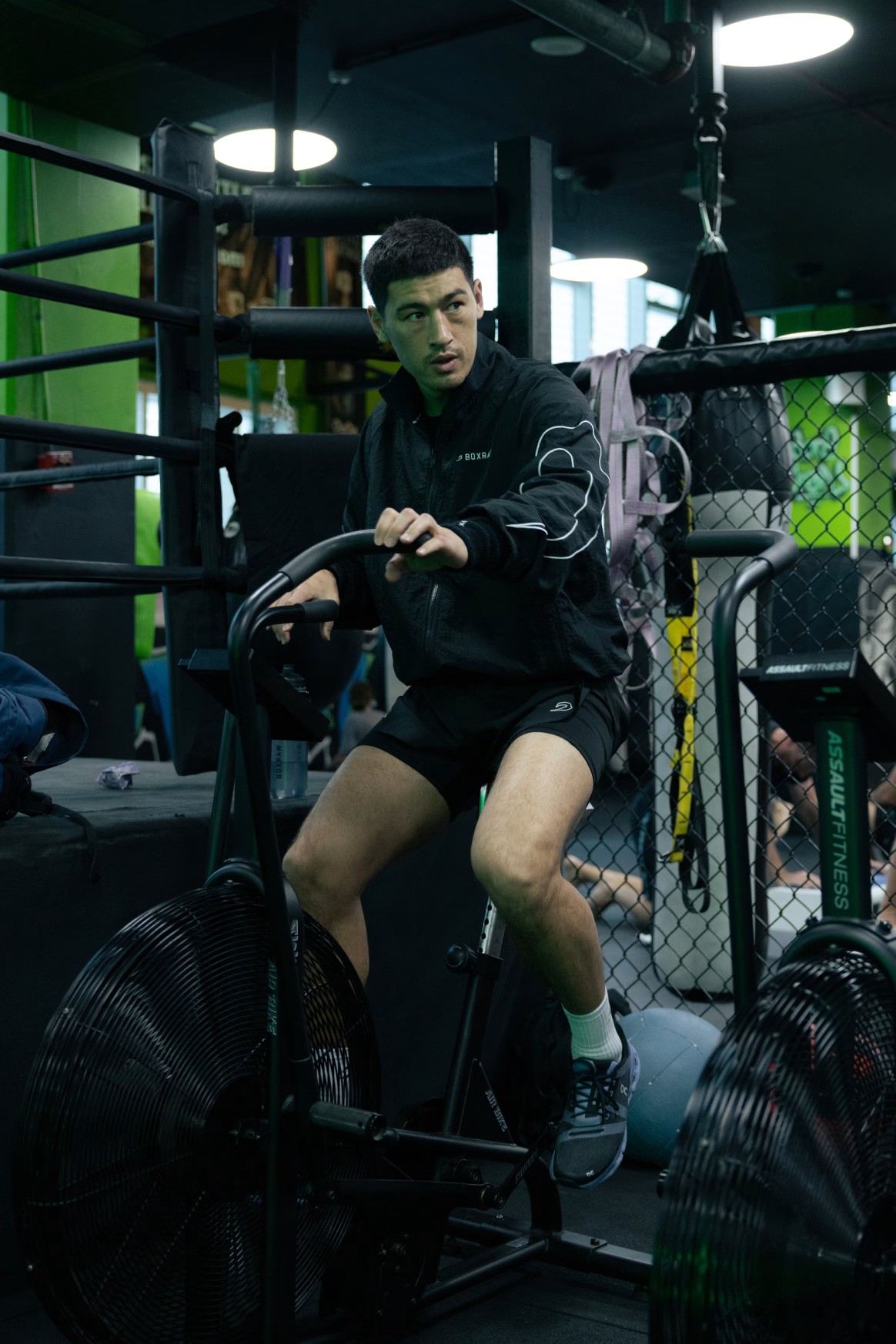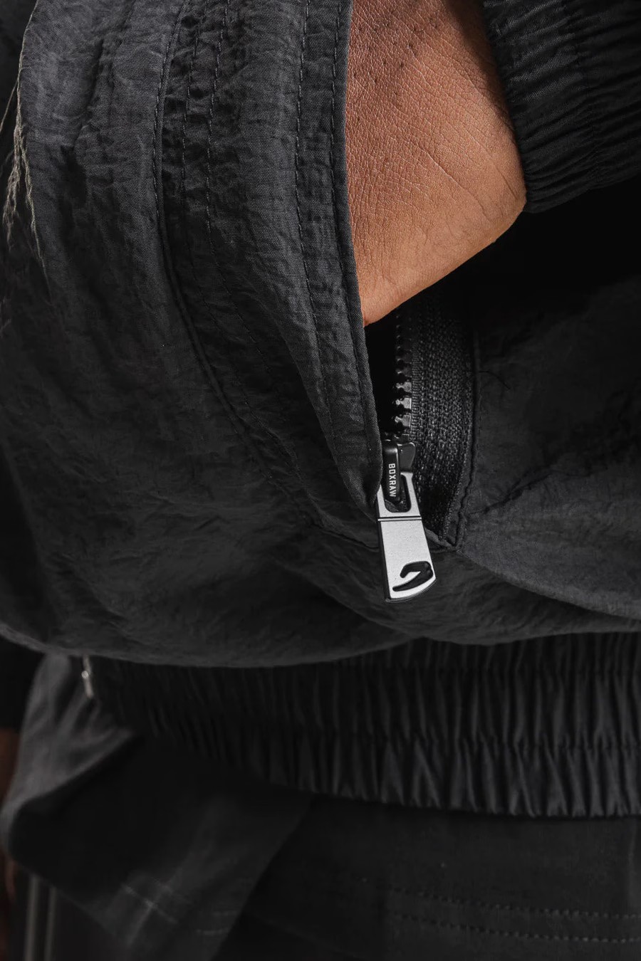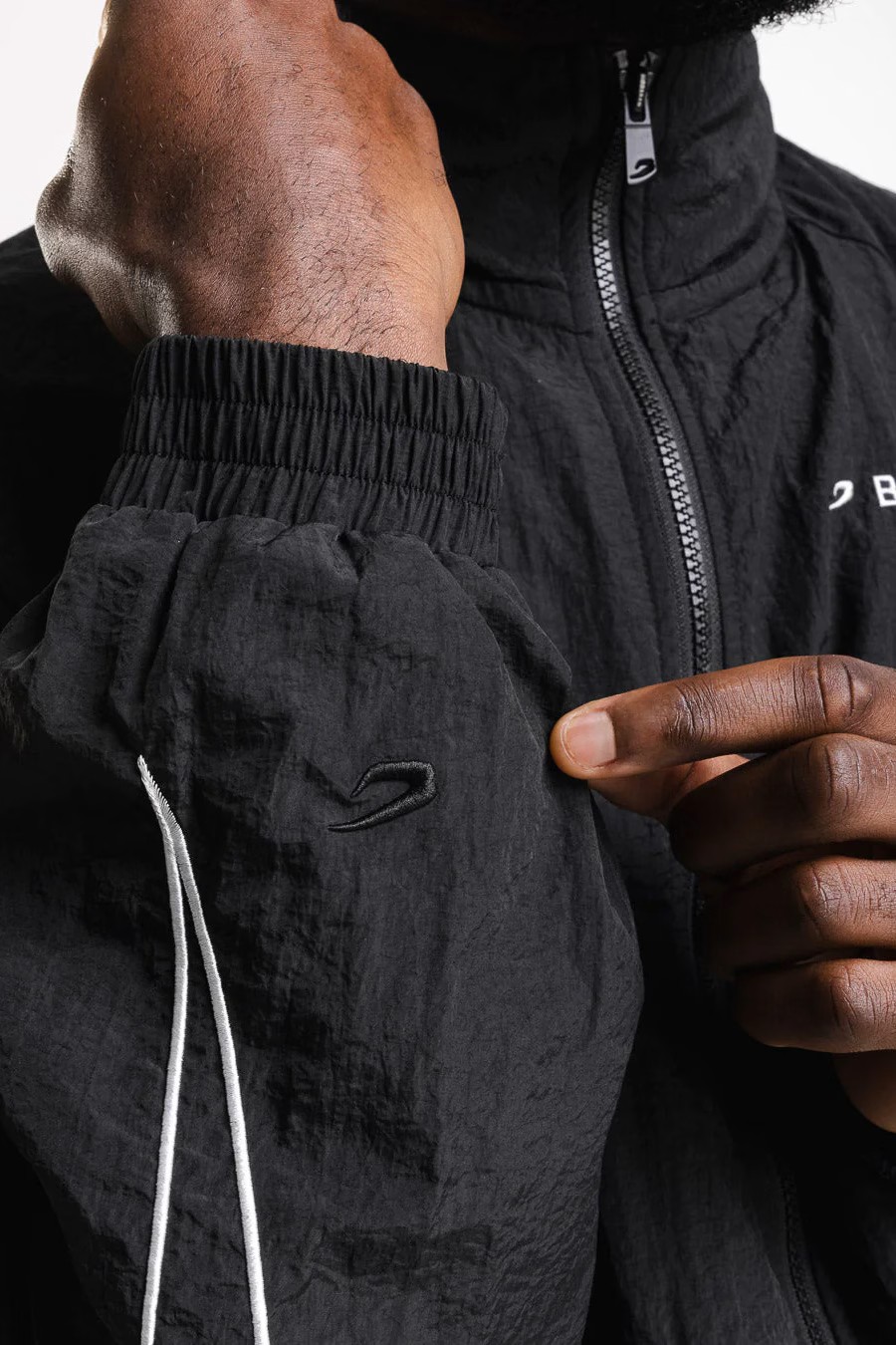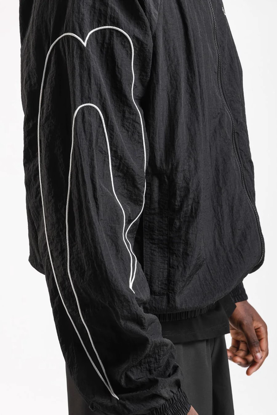 블랙 재킷을 착용한 모델: 엘리엇 (아마추어 라이트헤비급 복서), 신장: 190cm, 모델 착용 사이즈: L