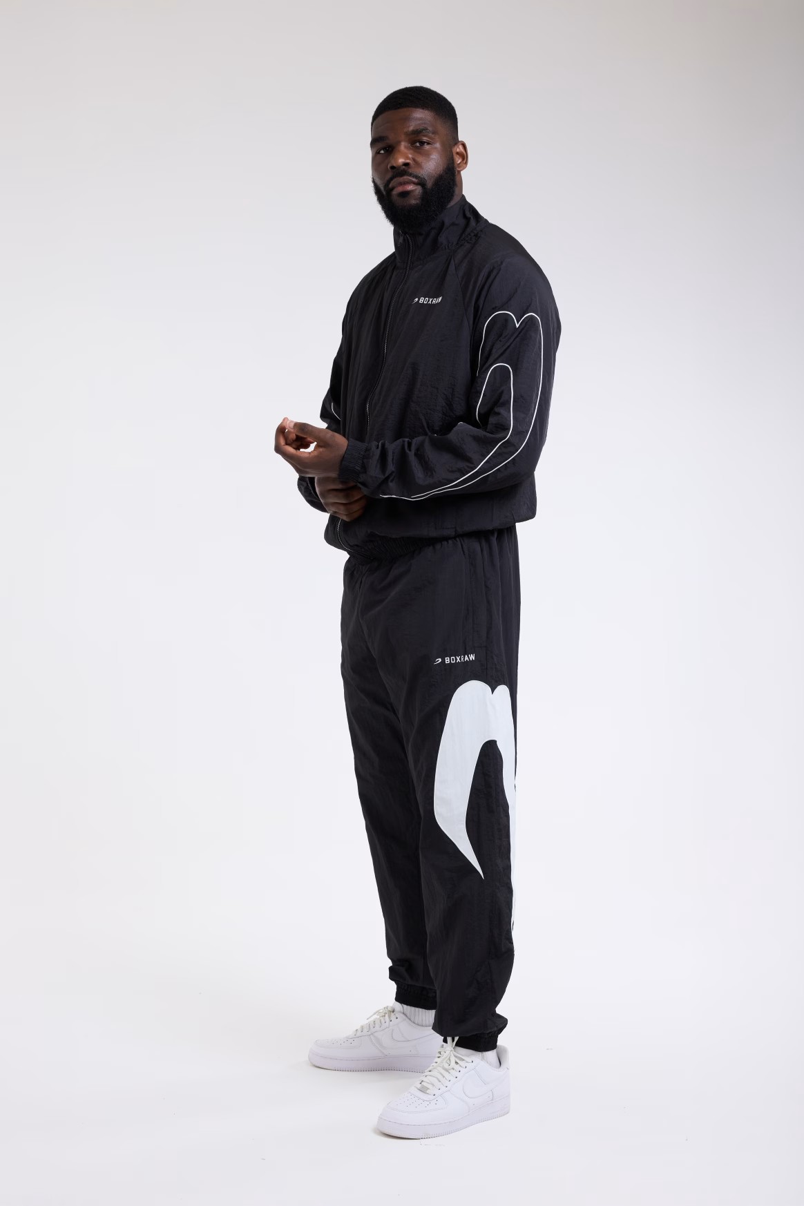 블랙 조거팬츠를 착용한 모델: 엘리엇 (아마추어 라이트헤비급 복서), 신장: 190cm, 모델 착용 사이즈: XL