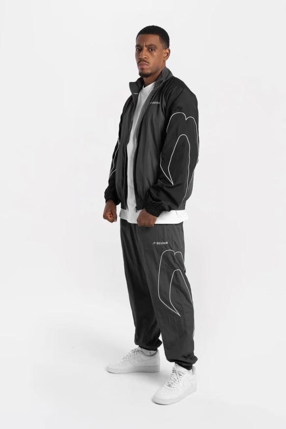 블랙 조거팬츠를 착용한 모델: 엘리엇 (아마추어 라이트헤비급 복서), 신장: 190cm, 모델 착용 사이즈: XL
