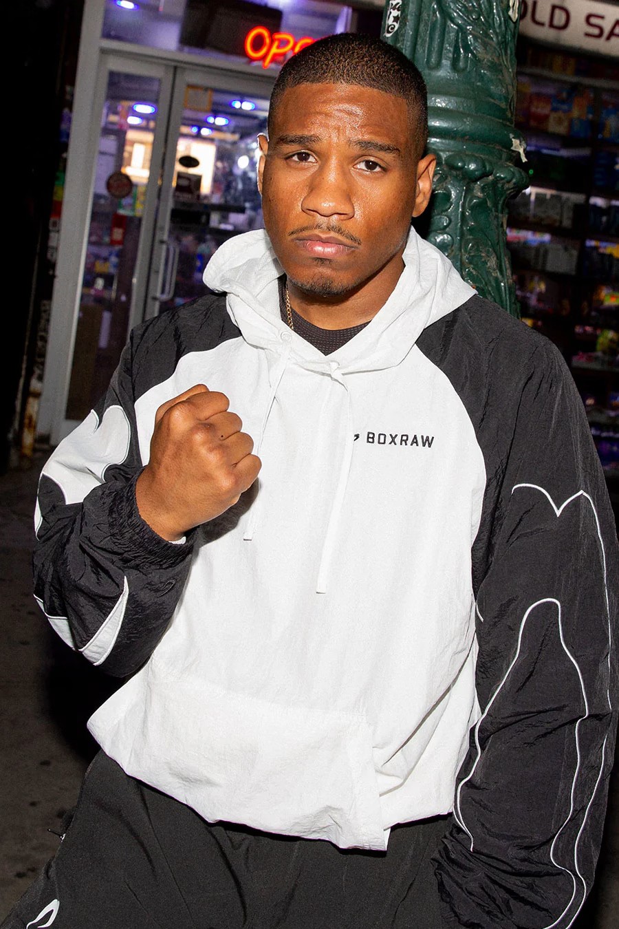 모델: 에즈라 (프로 헤비급 복서), 신장: 188cm, 모델 착용 사이즈: L