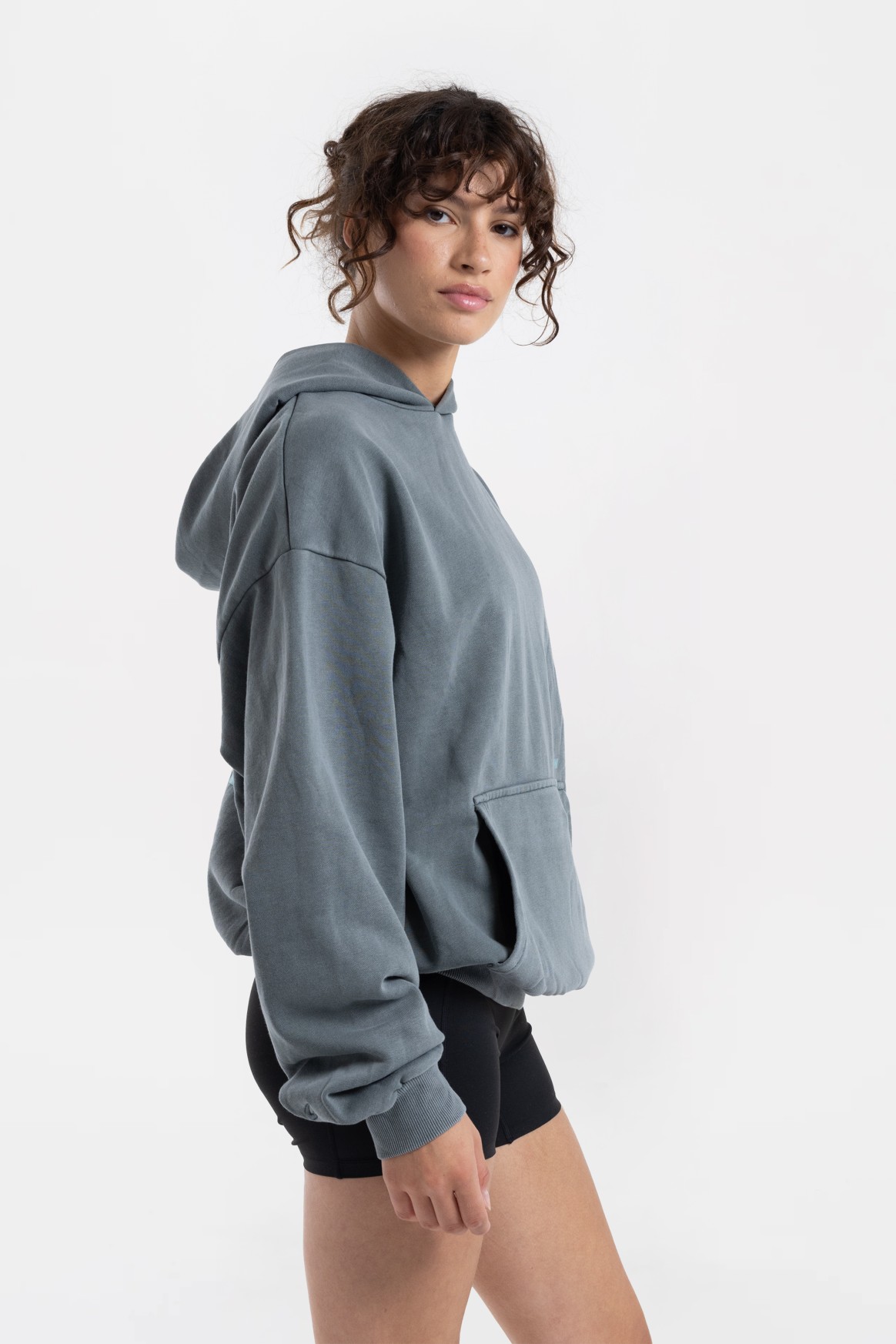 워시드 베이비 블루 후디를 착용한 모델: 178cm, 모델 착용 사이즈: S