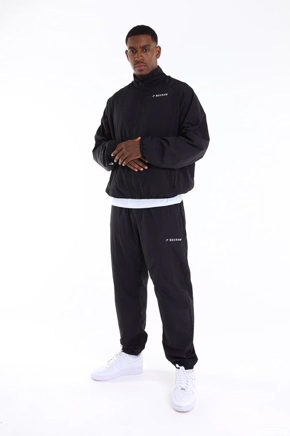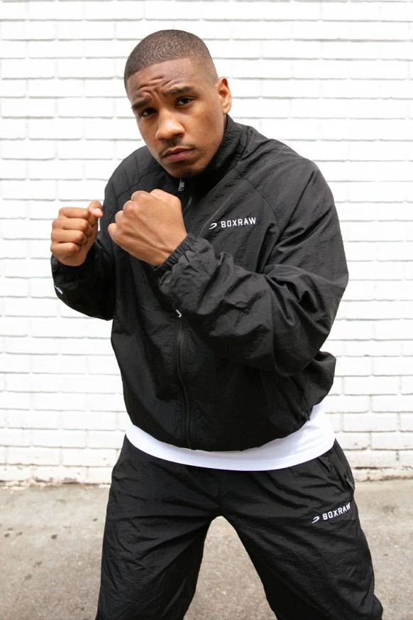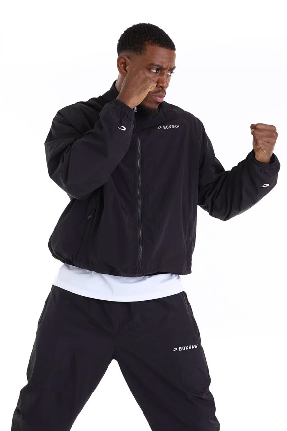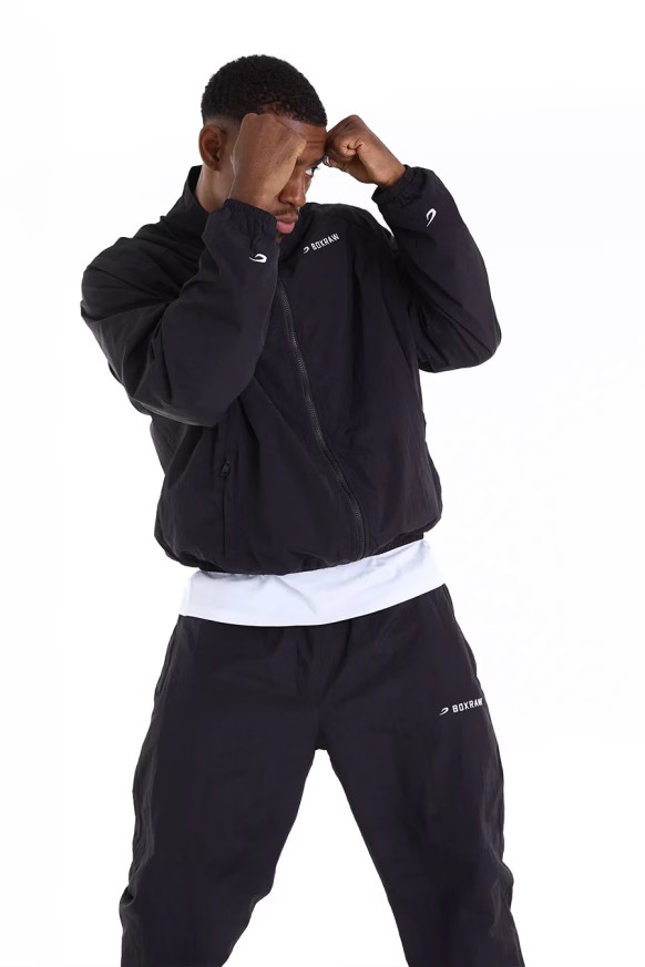 블랙 재킷을 착용한 모델: 에즈라 (프로 헤비급 복서), 신장: 188cm, 모델 착용 사이즈: L
