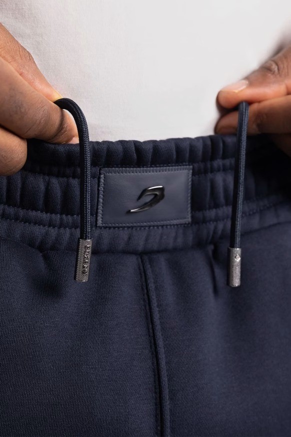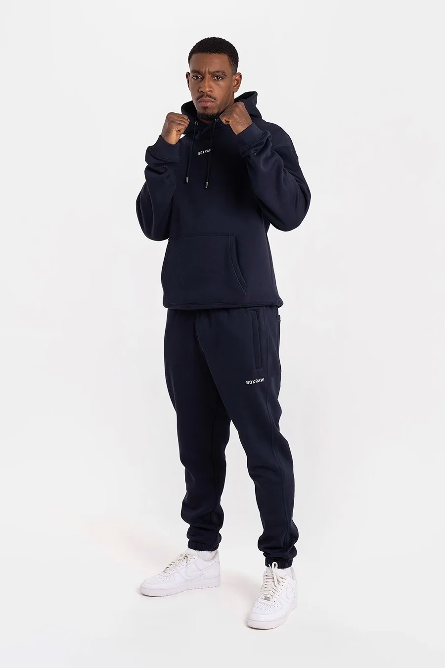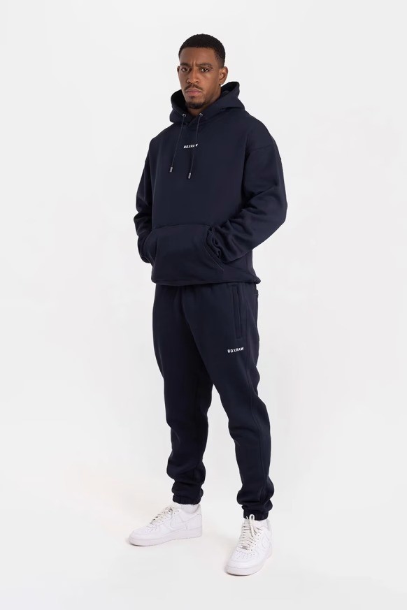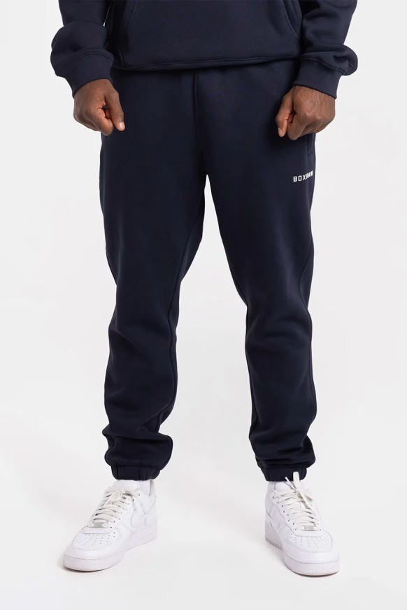 네이비 조거팬츠를 착용한 모델: 에즈라 (프로 헤비급 복서), 신장: 188cm, 모델 착용 사이즈: L