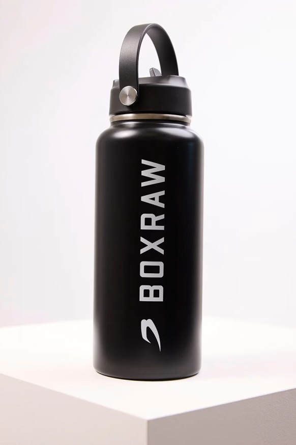 BOXRAW 워터보틀은 내구성이 뛰어난 스테인리스 스틸 소재로 제작되었으며 인체공학적인 손잡이와 누수 방지 뚜껑이 있어 휴대가 간편합니다. 보온, 보냉 시스템을 통해 음료의 온도를 몇시간 동안 따뜻한게 또는 차갑게 유지 할 수 있습니다. BOXRAW 로고가 앞면에 인쇄되어 있습니다.