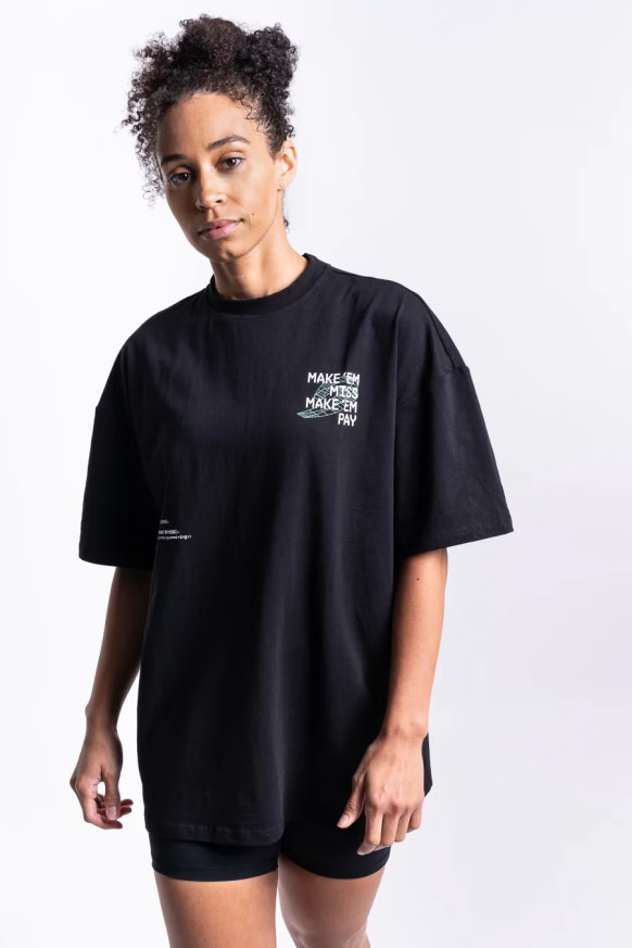 Make 'em miss, make 'em pay — 이것이 우리의 방식입니다. 이 오버사이즈 티셔츠와 함께라면 복싱의 본질을 더욱 편안하고 자유롭게 경험할 수 있습니다.