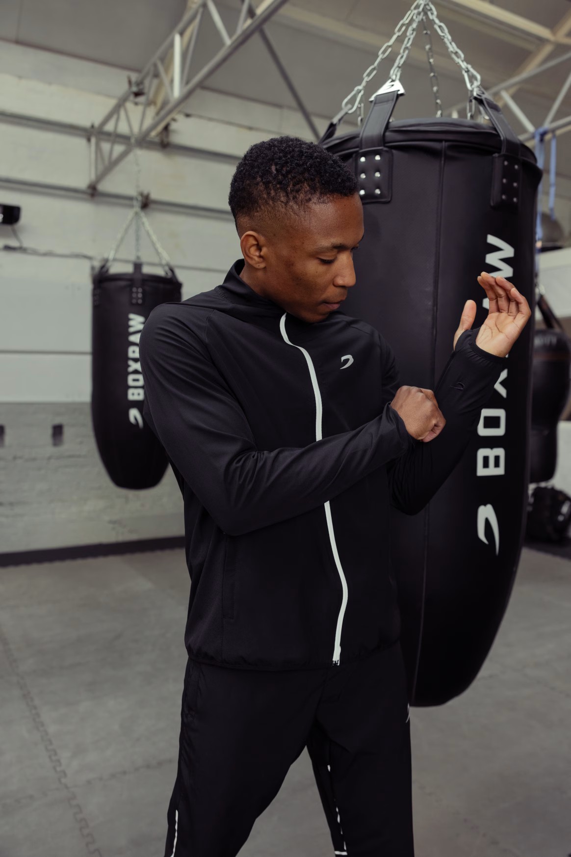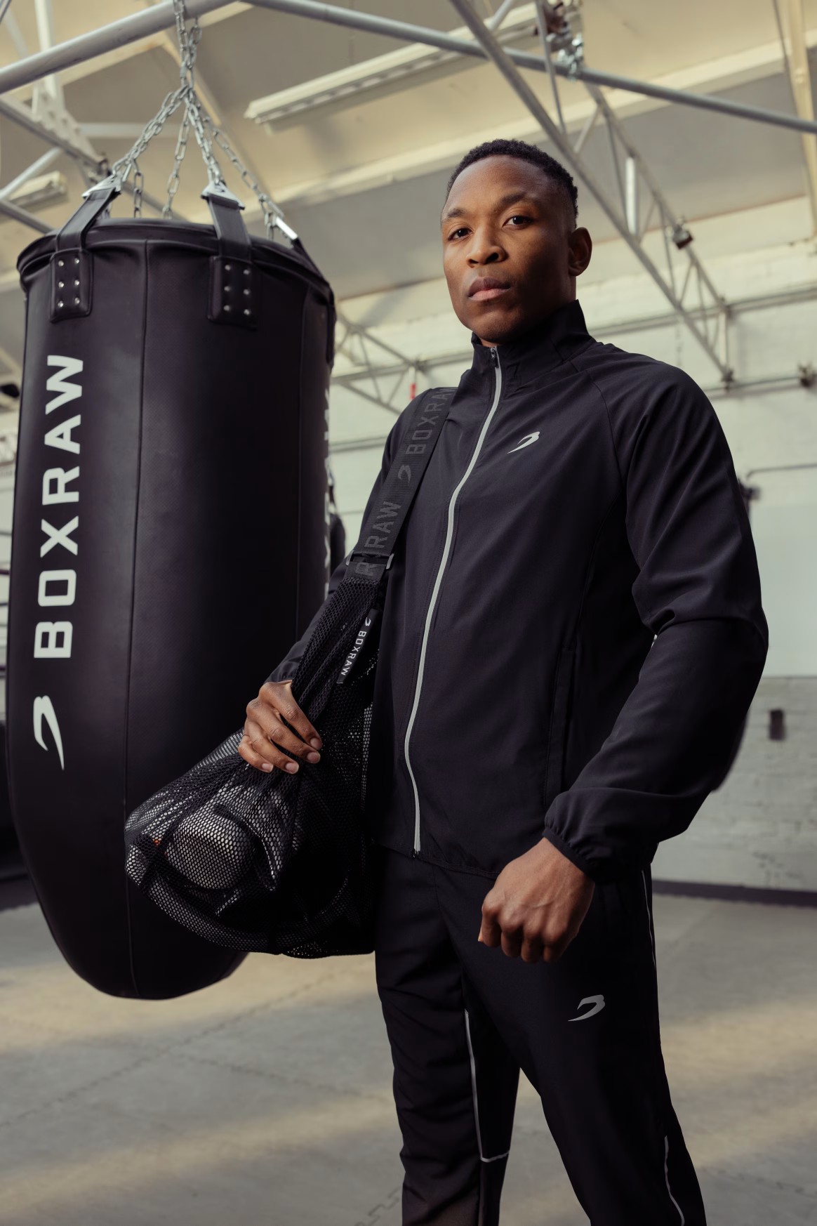 모델: 에즈라 (프로 헤비급 복서), 신장: 188cm, 모델 착용 사이즈: L