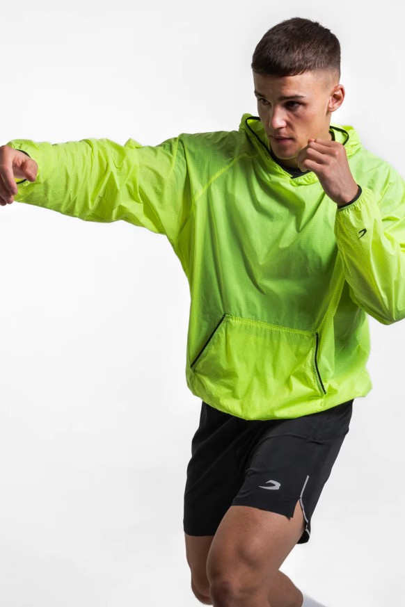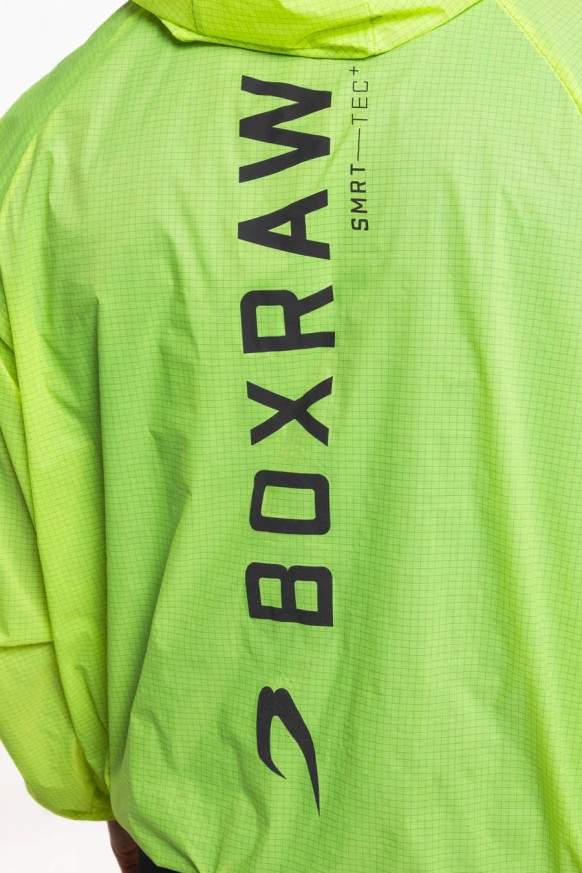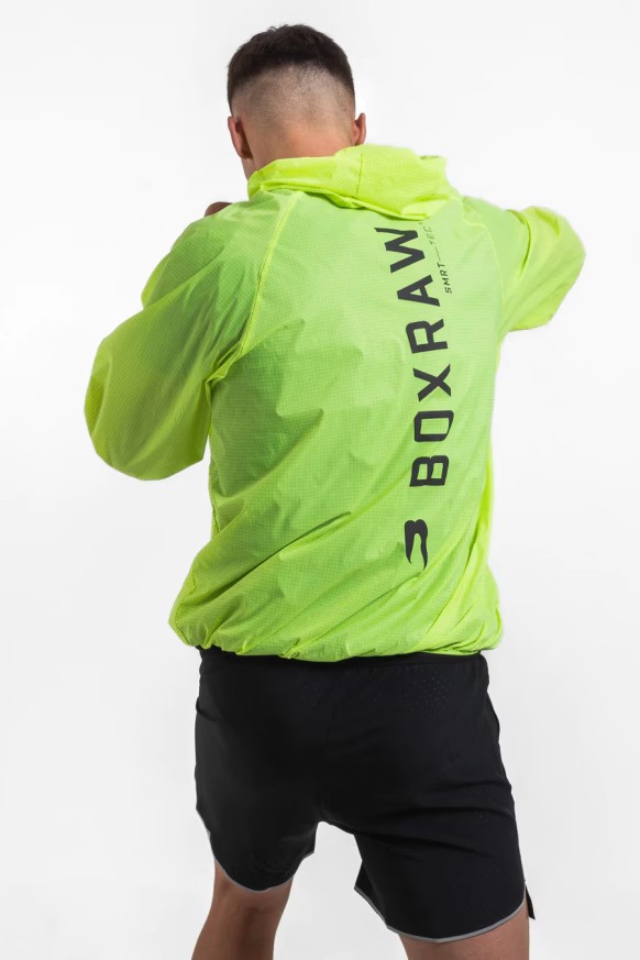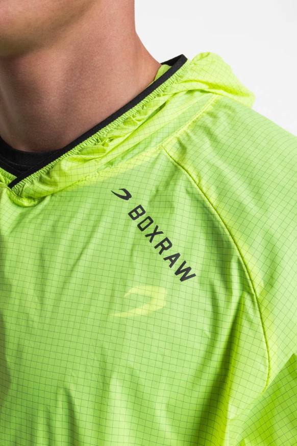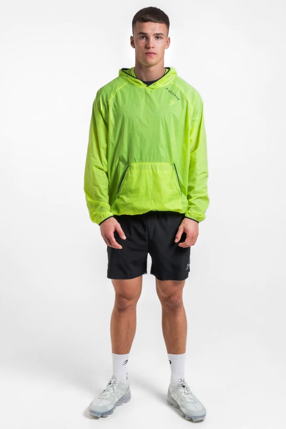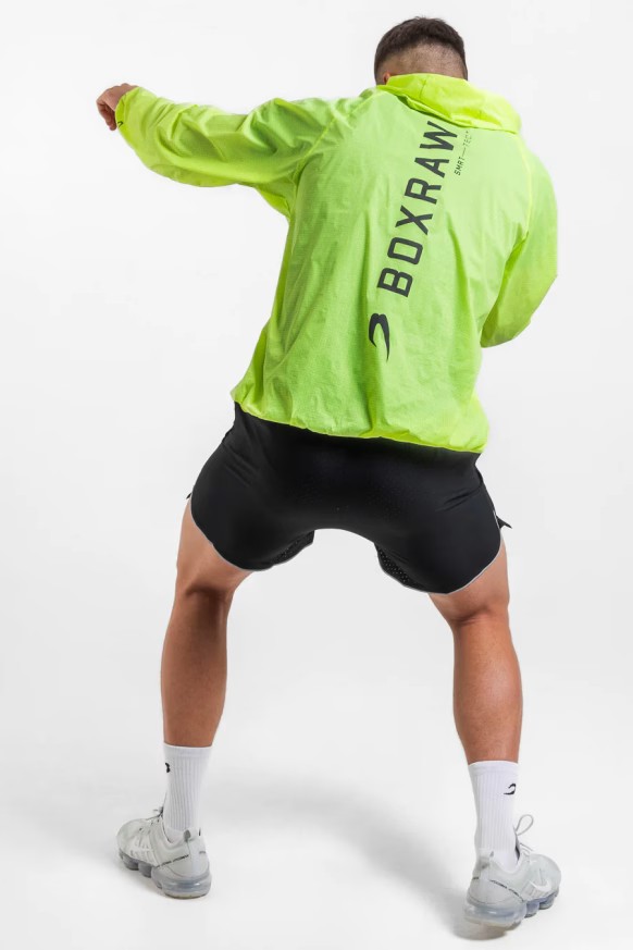 차콜, 네온 옐로우 후디를 착용한 모델: 테일러 (아마추어 라이트헤비급 복서), 신장: 180cm, 모델 착용 사이즈: L