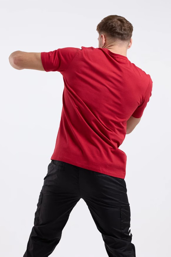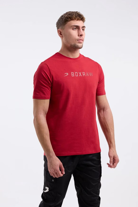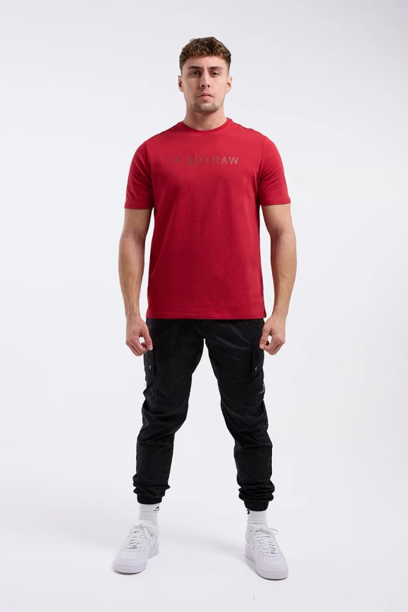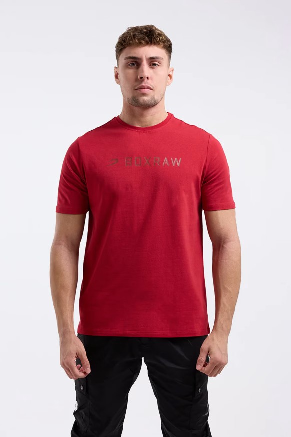 레드 티셔츠를 착용한 모델: 프랭키 (프로 웰터급 복서), 신장: 182cm, 모델 착용 사이즈: M