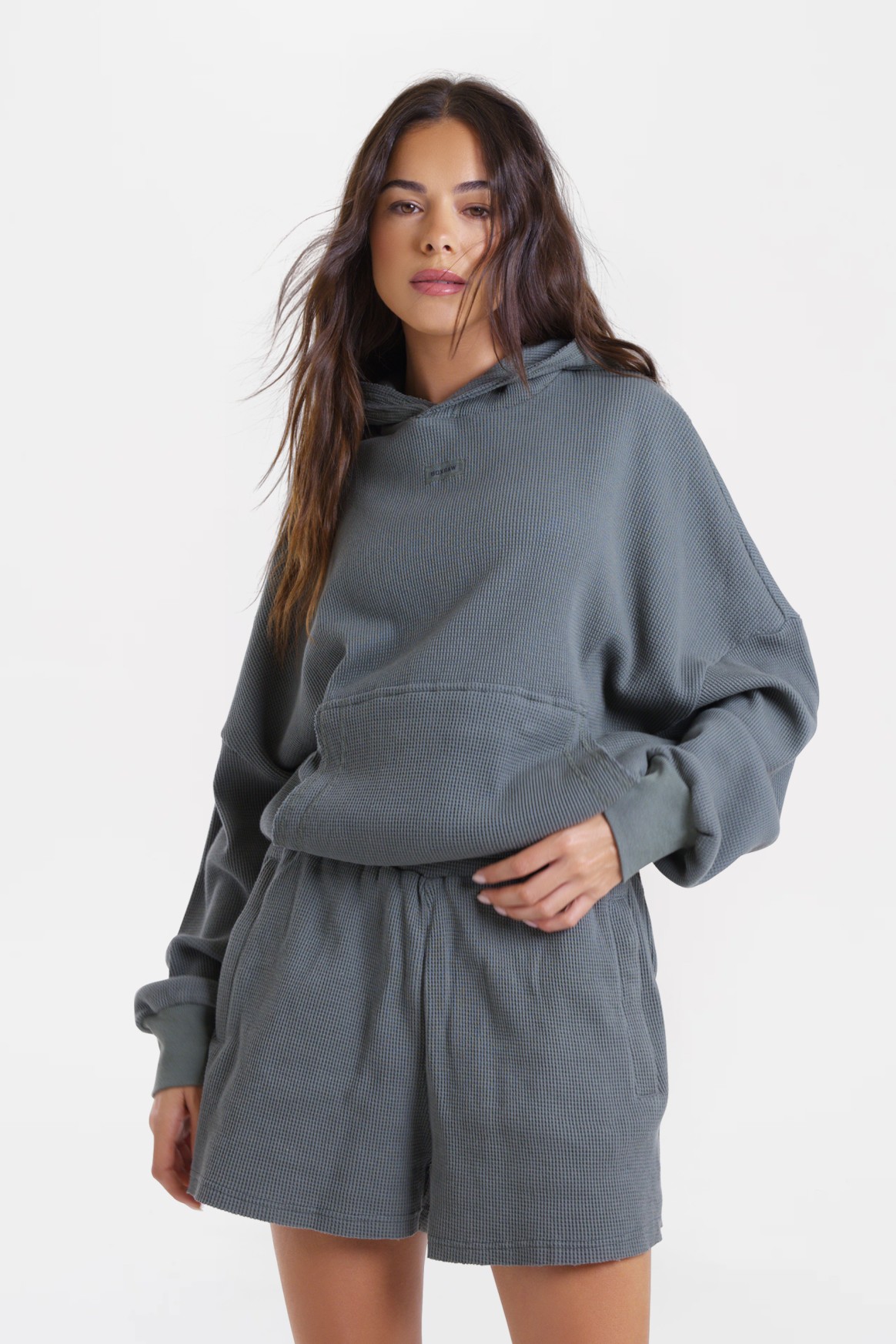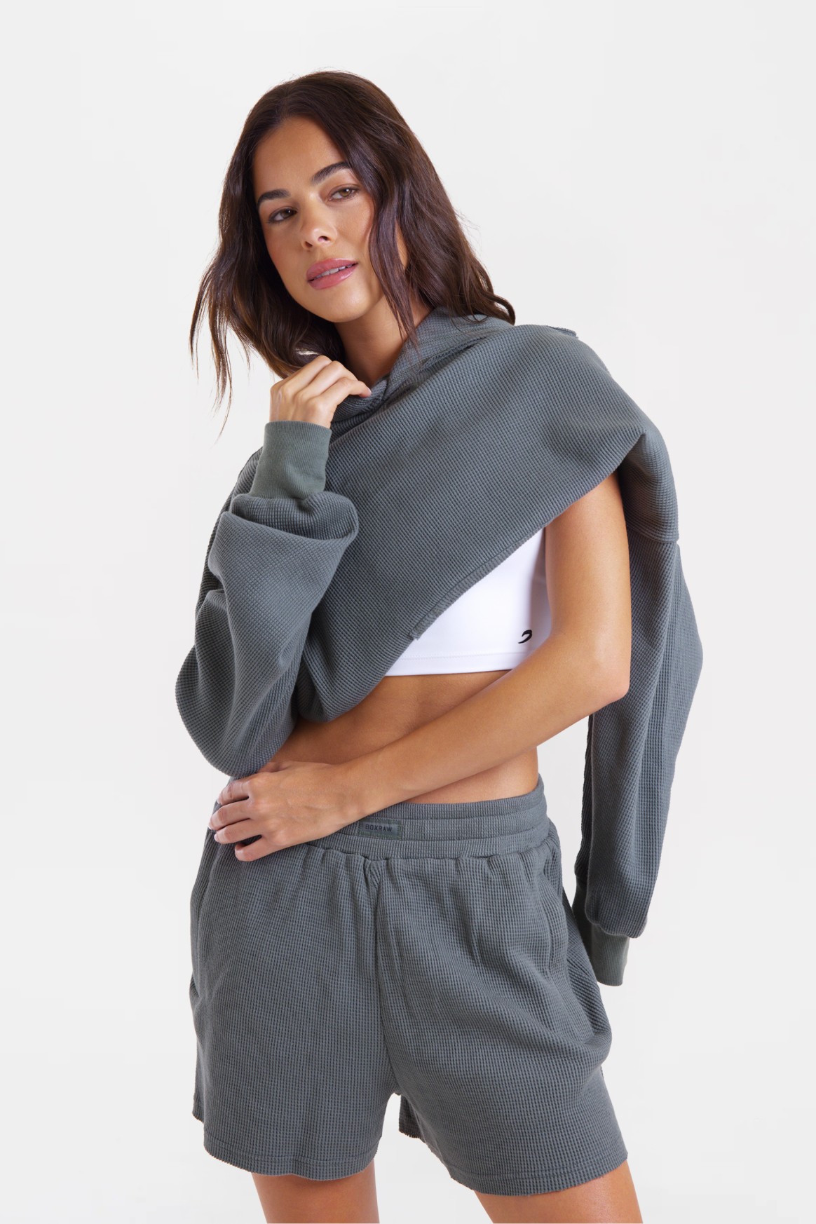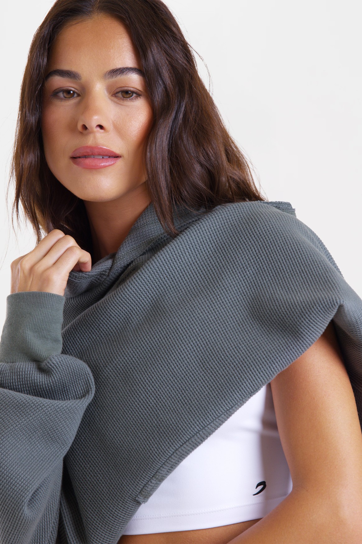 셜리 와플 후디는 가볍고 통기성이 뛰어난 와플 니트 소재로 만들어, 트레이닝 후 쿨다운이나 일상적인 생활, 편안한 휴식 시간에도 부드러운 착용감을 제공합니다.
