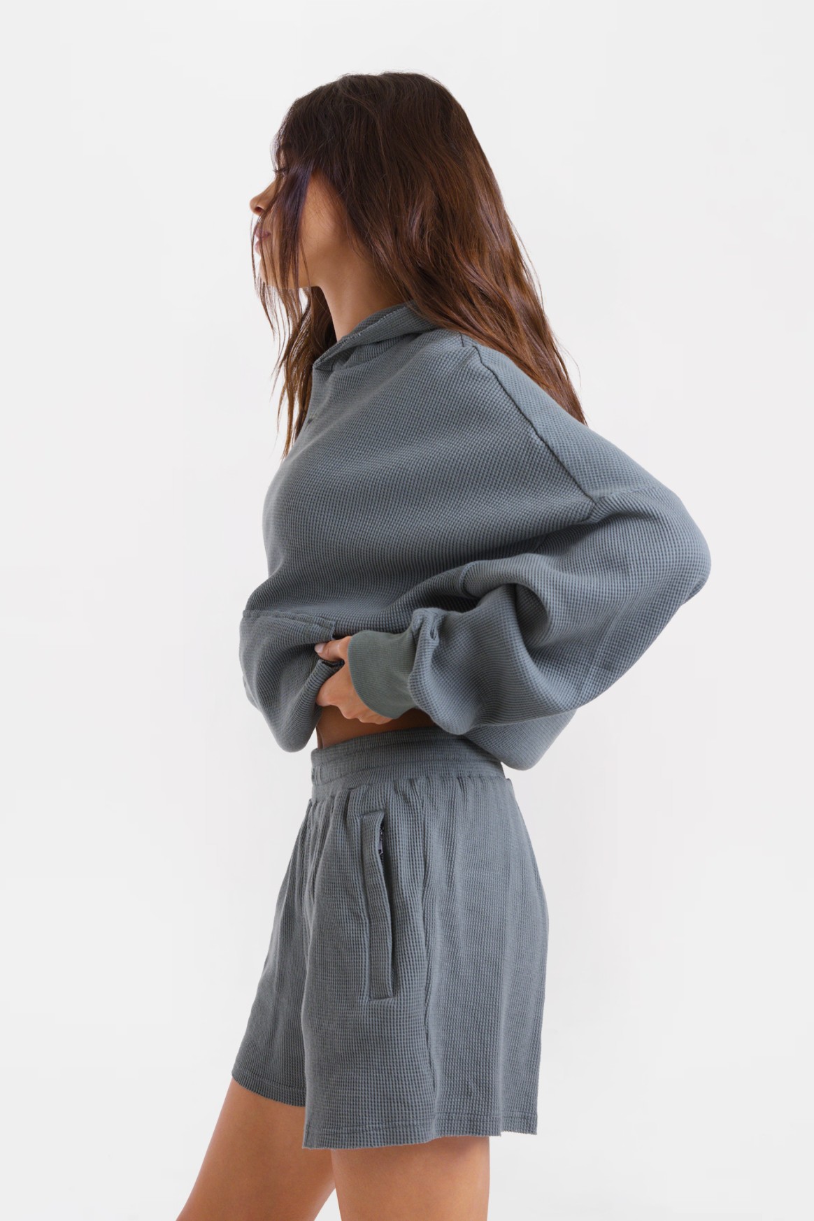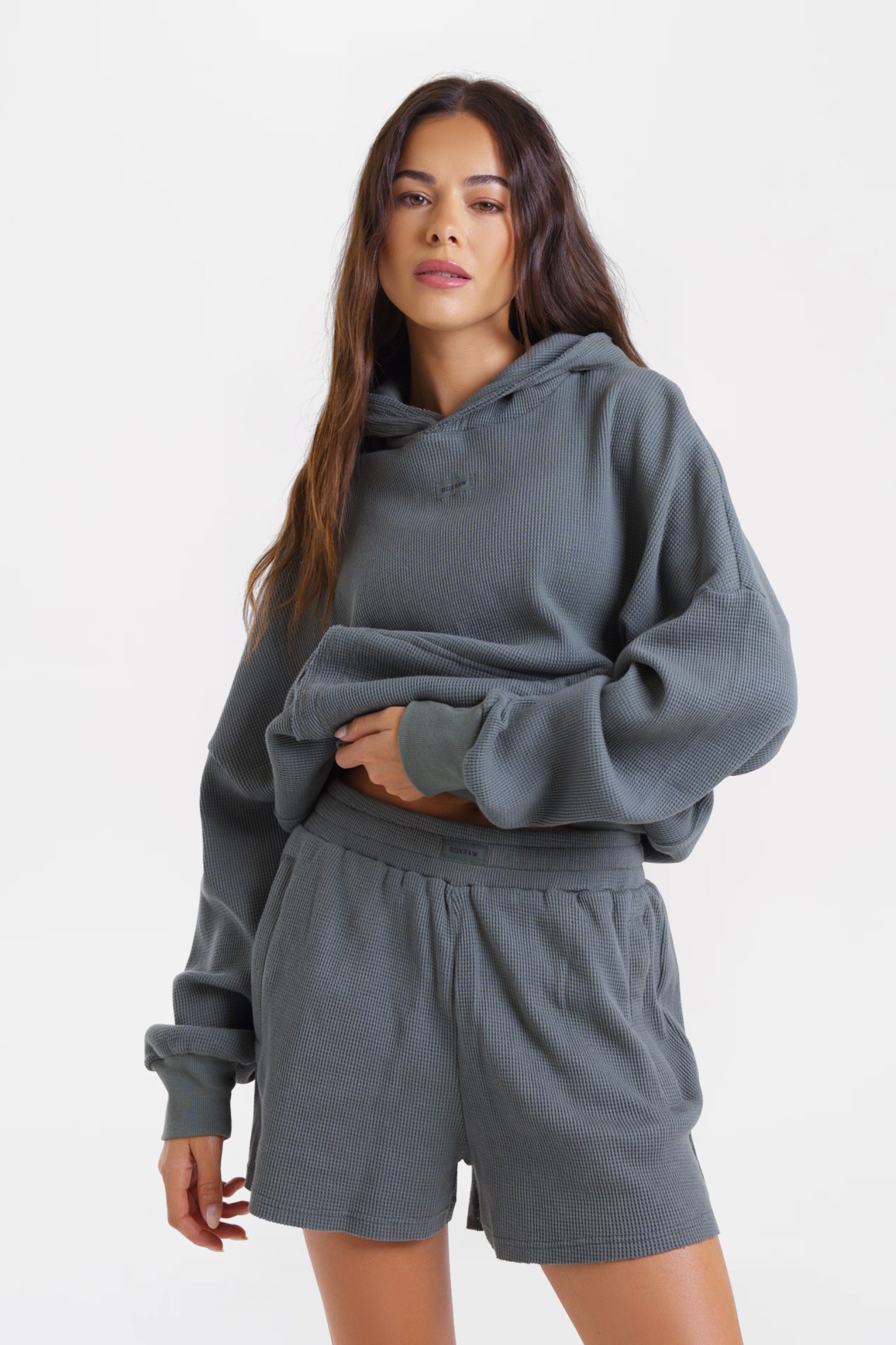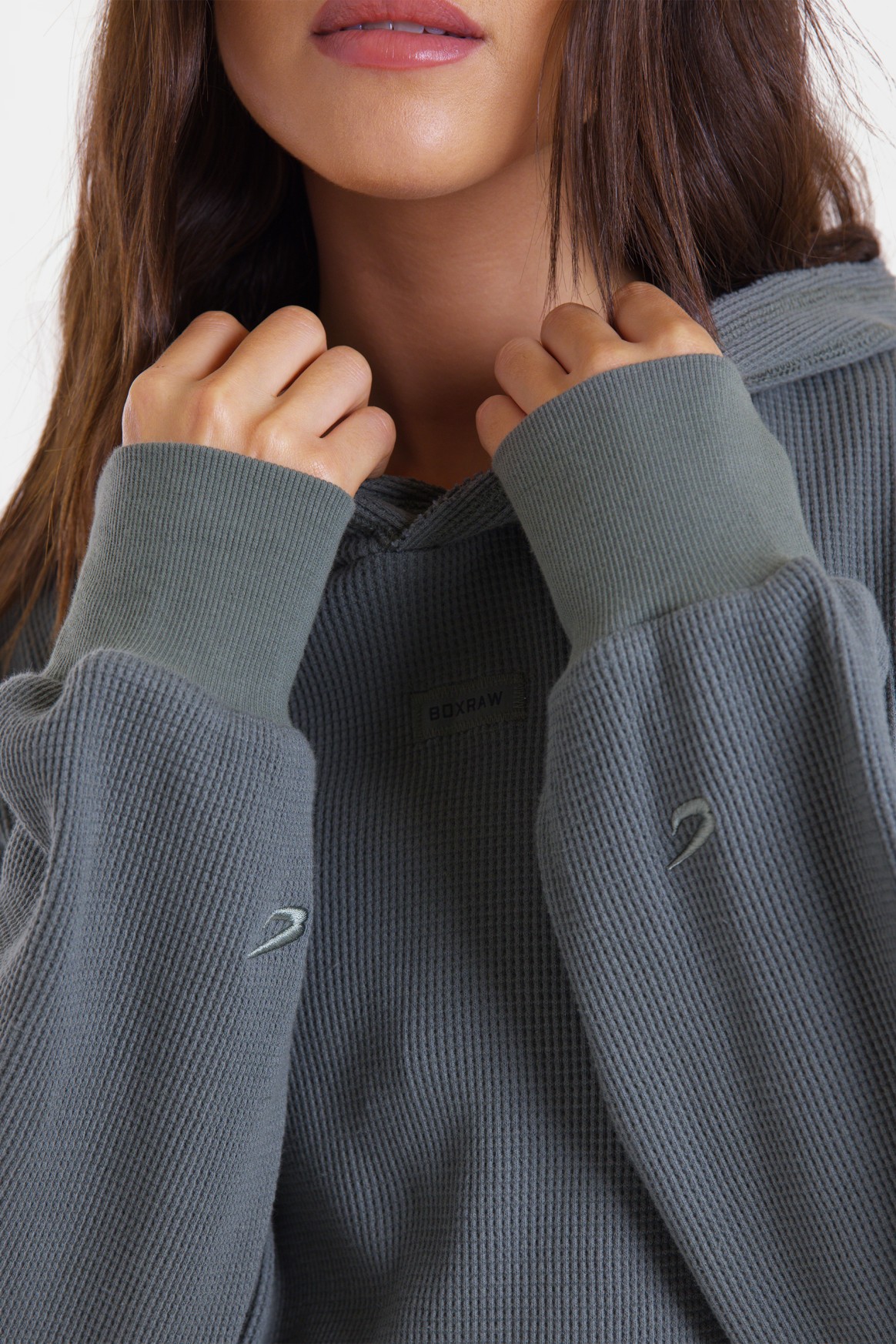 셜리 와플 후디는 가볍고 통기성이 뛰어난 와플 니트 소재로 만들어, 트레이닝 후 쿨다운이나 일상적인 생활, 편안한 휴식 시간에도 부드러운 착용감을 제공합니다.