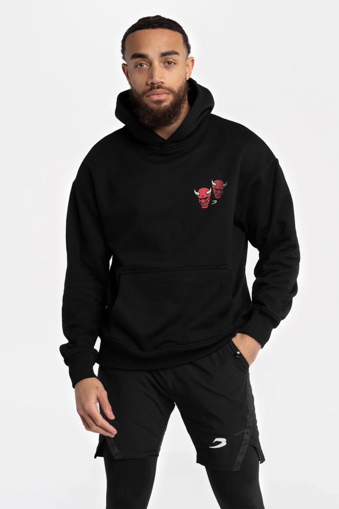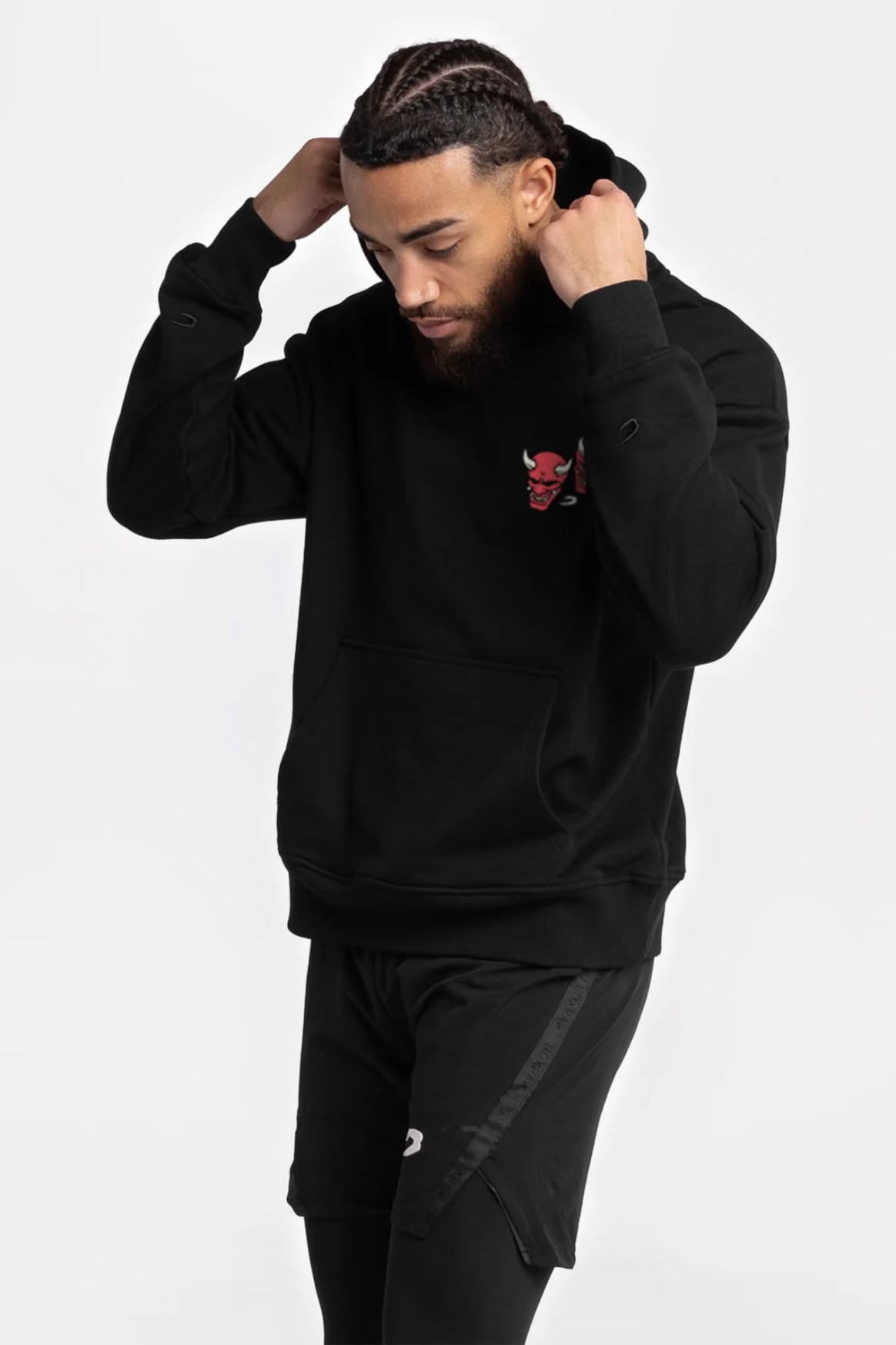 등의 Death Before Dishonor 프린트와 가슴의 일본 오니 마스크 로고가 있으며 이 후디는 Lee x BOXRAW 리미티드 컬렉션의 일부로 출시되었습니다.