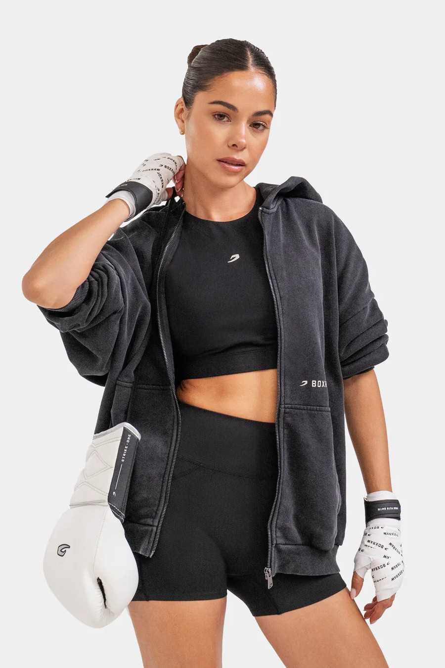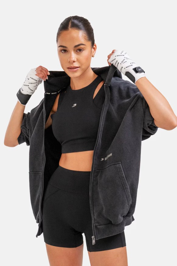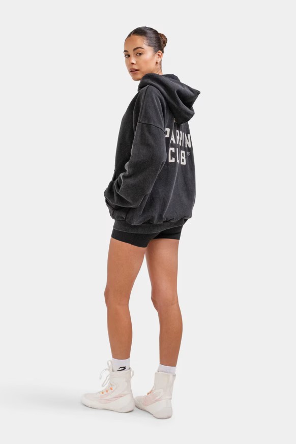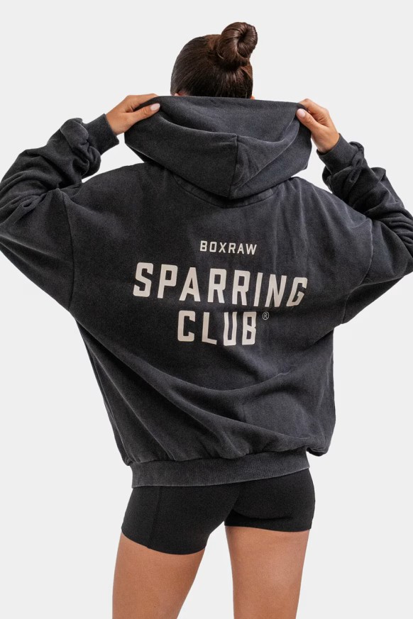 스파링 클럽 집업 후디는 통기성 좋은 코튼 프렌치 테리 소재와 오버사이즈 핏으로 제작되어 링에 오르기 전 몸과 마음을 따뜻하게 지켜줍니다. 스파링 클럽 집업 후디와 함께  파이트를 편안하게 준비하세요.