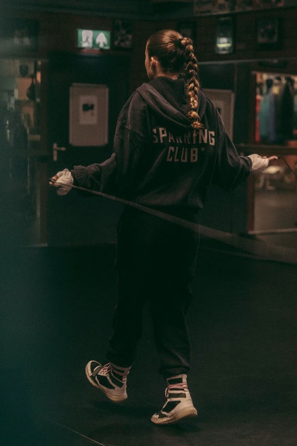 스파링 클럽 스웨트셔츠는 링에 오르기 전 조용한 순간에 몸풀기에 완벽한 아이템입니다. 통기성이 뛰어난 프렌치 테리 코튼 소재로 제작되어 편안함과 함께 자연스러운 빈티지 무드를 제공합니다.