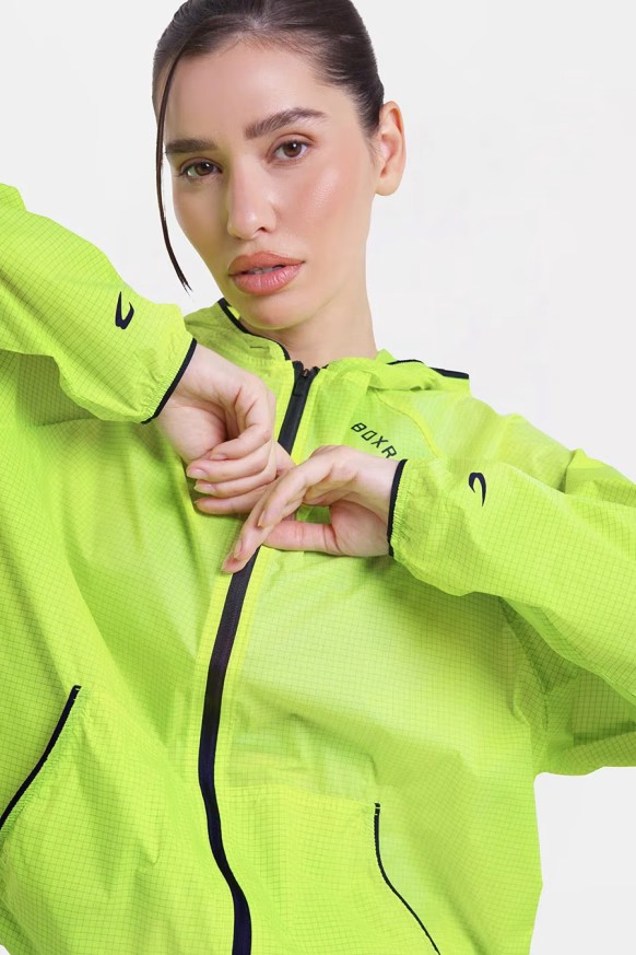 차콜, 네온 옐로우윈드브레이커를 착용한 모델 신장: 176cm, 모델 착용 사이즈: S
