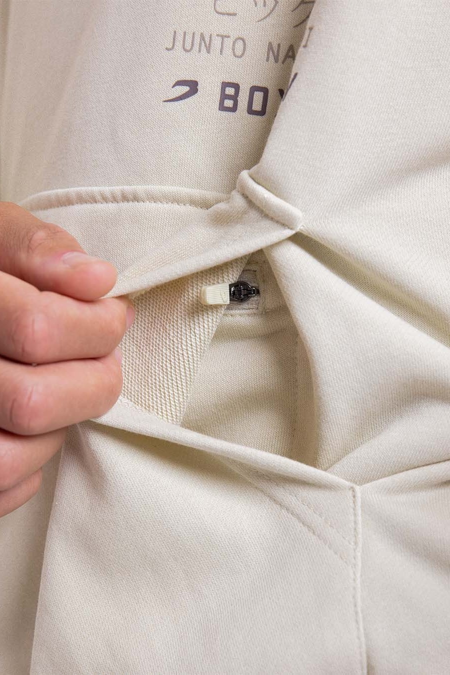 소지품을 안전하게 보관할 수 있는 특허받은 히든 지퍼 포켓을 적용해 실용성을 높였으며, SPARRING CLUB® 그래픽과 가타카나로 표현된 ‘빅뱅(ビッグバン)’ 프린트가 더해져 나카타니의 레거시를 상징적으로 담아냈습니다. 워시드 프렌치 테리 소재와 오버사이즈 핏이 어우러져 편안한 착용감을 제공합니다.