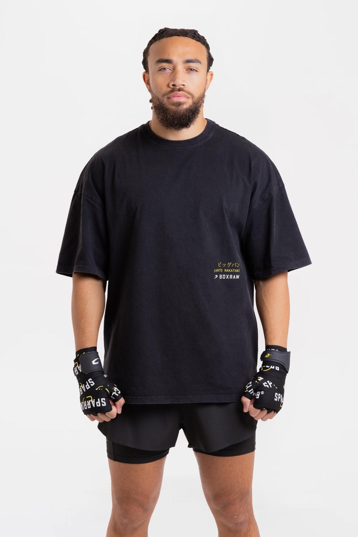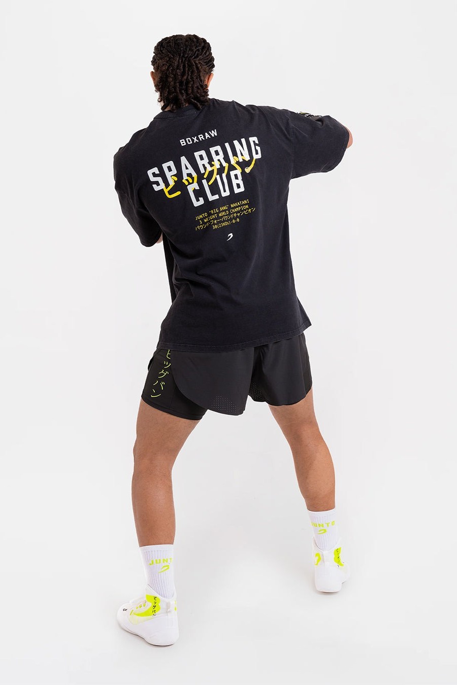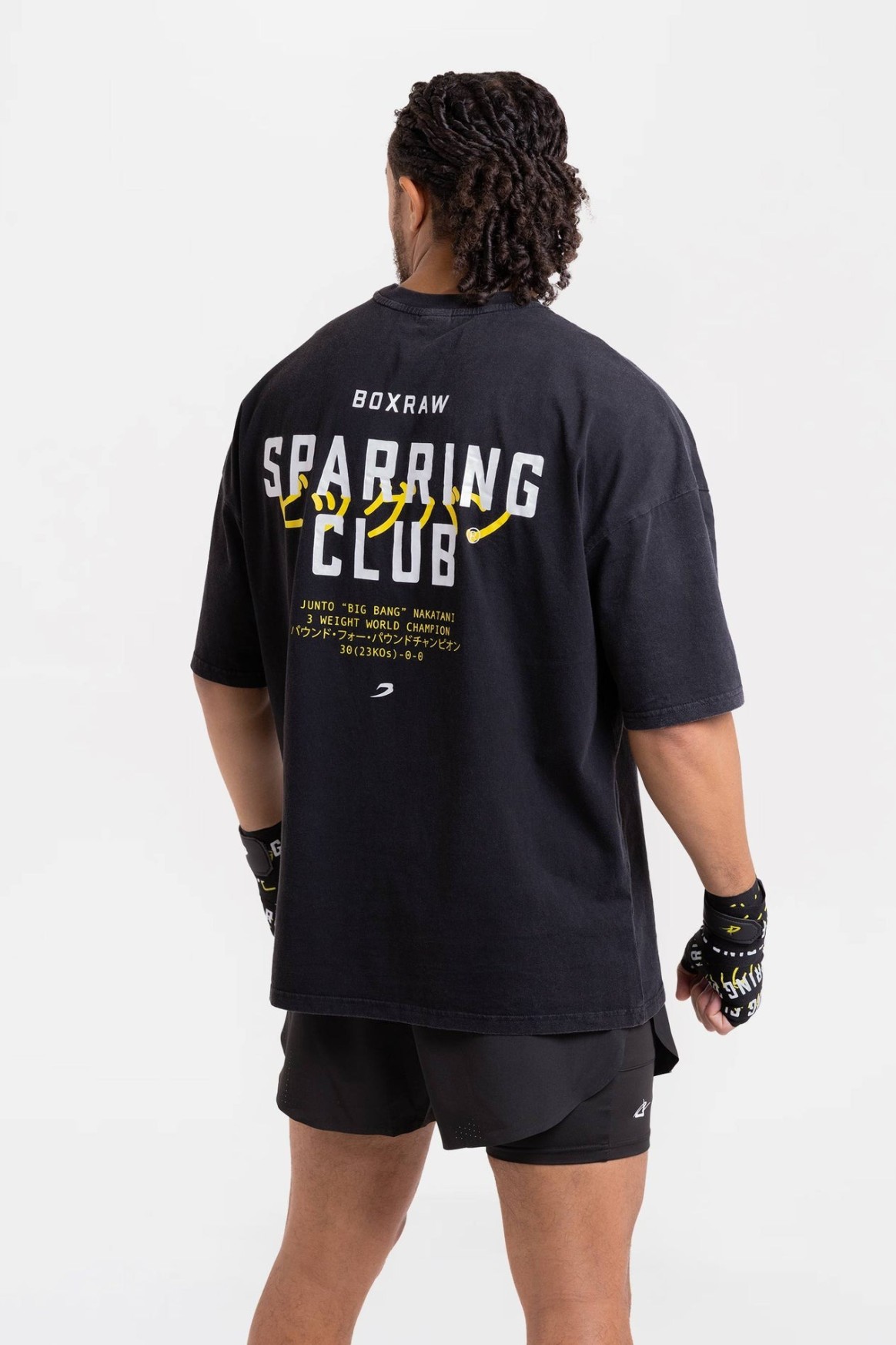 나카타니 × 스파링 클럽 오버사이즈 티셔츠는 준토 나카타니의 위대한 커리어를 기념하는 아이템입니다. 워시드 프렌치 테리 소재와 오버사이즈 핏이 어우러져 편안한 착용감을 제공합니다. SPARRING CLUB® 그래픽과 가타카나로 표현된 ‘빅뱅(ビッグバン)’ 프린트가 더해져 나카타니의 레거시를 상징적으로 담아냈습니다.