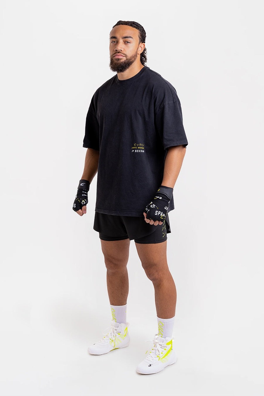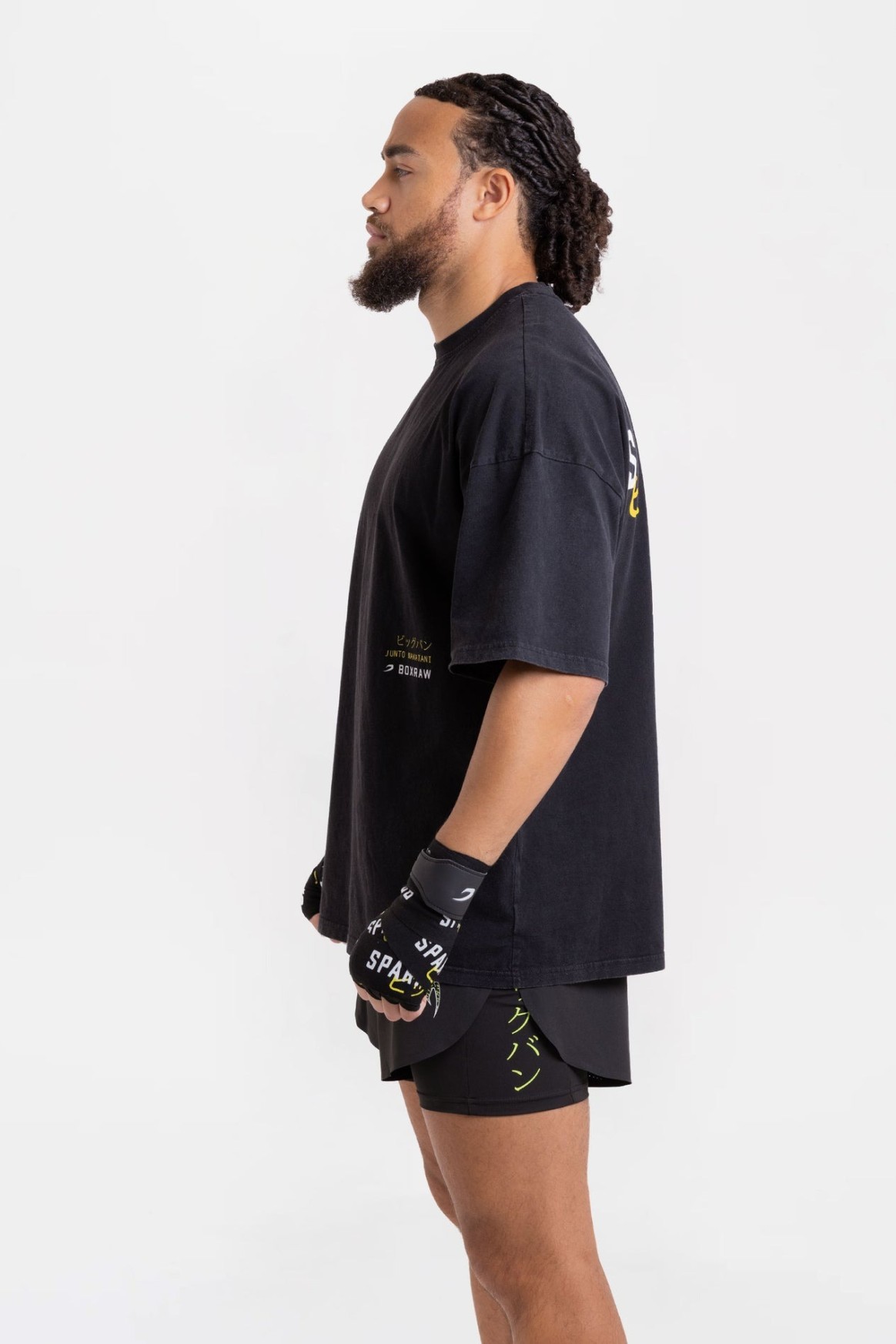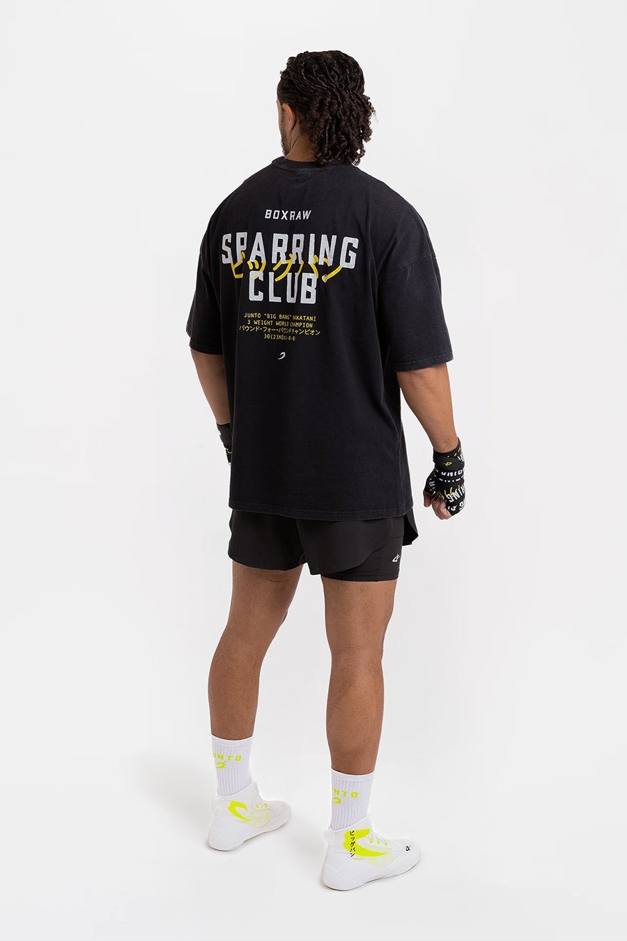 나카타니 × 스파링 클럽 오버사이즈 티셔츠는 준토 나카타니의 위대한 커리어를 기념하는 아이템입니다. 워시드 프렌치 테리 소재와 오버사이즈 핏이 어우러져 편안한 착용감을 제공합니다. SPARRING CLUB® 그래픽과 가타카나로 표현된 ‘빅뱅(ビッグバン)’ 프린트가 더해져 나카타니의 레거시를 상징적으로 담아냈습니다.